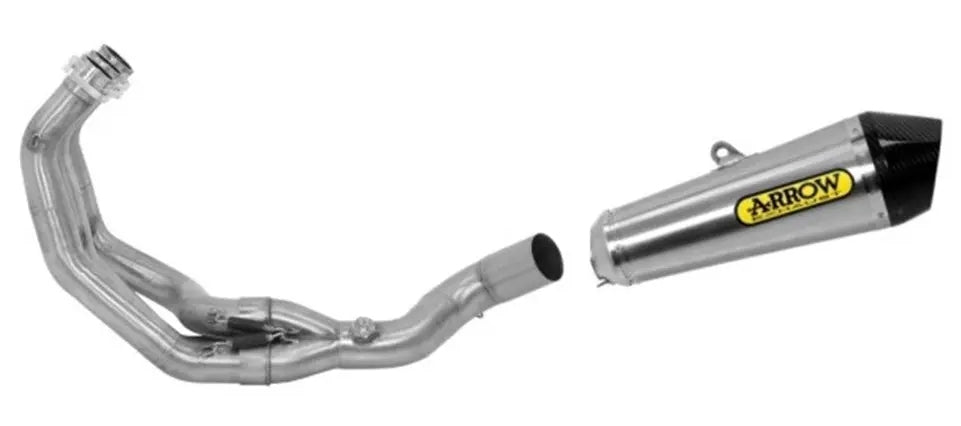 Performance improves already with the assembly of the slip-on only, the addition of the manifolds takes the increases in power and torque to even higher levels. Can be installed by means of a steel fitting on stock or Arrow collectors depending on the application.