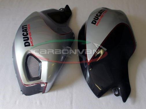 CARBONVANI Ducati Monster 696/796/1100 Carbon Side Tank Panels Kit "Silver"