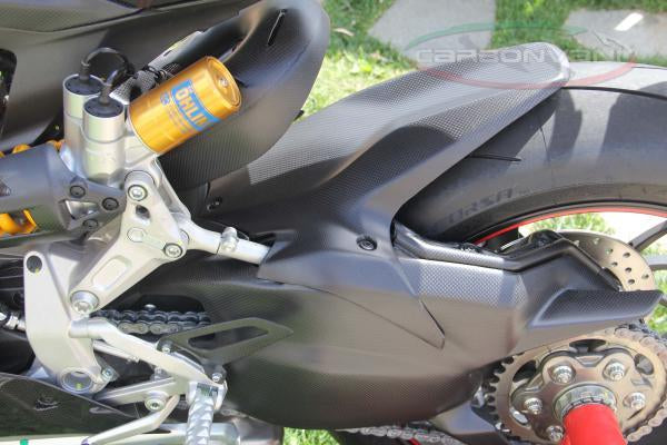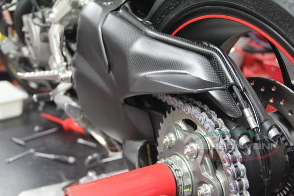 Carbon swingarm protector for Ducati Panigale models by Carbonvani.