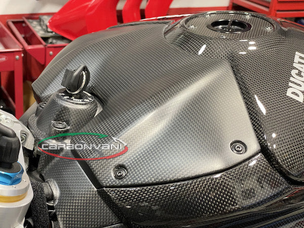 Carbon fuel tank battery cover for Ducati Panigale V4 / V4S by Carbonvani.