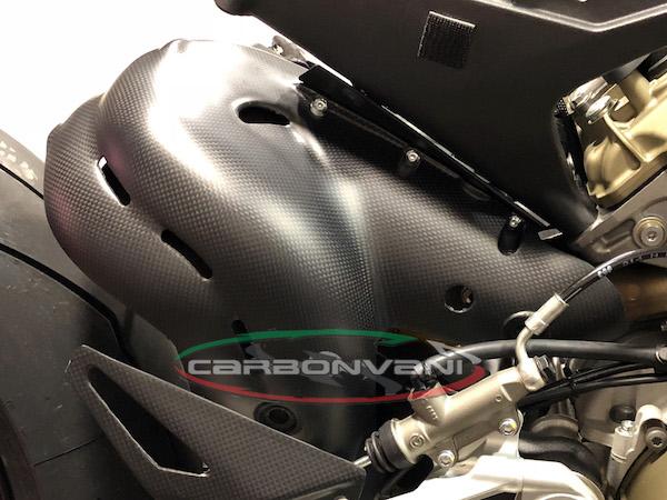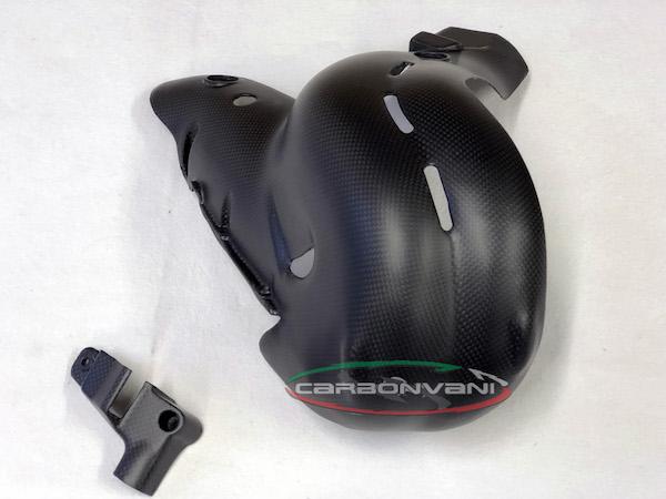 Carbon exhaust collector guard for Ducati Streetfighter V4 by Carbonvani.