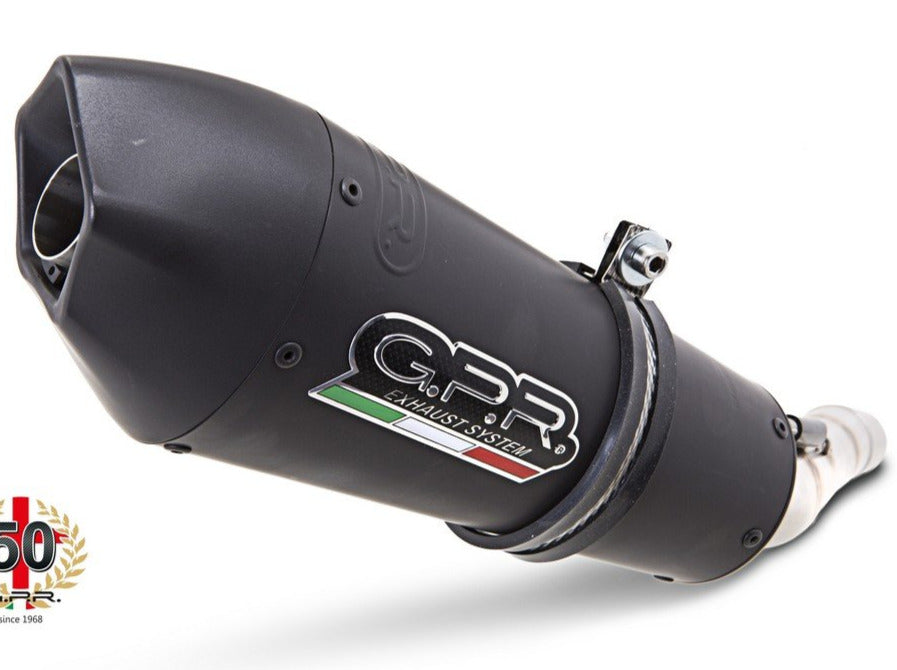 G.P.R. Exhaust Systems "GP Evo 4 Black Titanium" homologated slip-on exhaust silencer kit with double removable dB killer (baffle). Handmade in Italy.