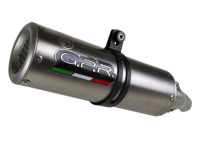 G.P.R. Exhaust Systems "M3 Titanium Natural" Moto3 World Champion replica homologated slip-on exhaust silencer kit with double removable dB killer (baffle). Handmade in Italy.