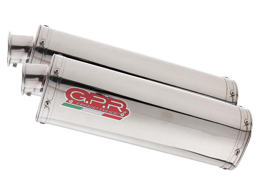 G.P.R. Exhaust Systems "Trioval" dual homologated slip-on exhaust silencers kit with double removable dB killer (baffle). Handmade in Italy.