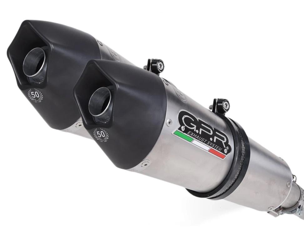 G.P.R. Exhaust Systems "GPE Anniversary Titanium" dual homologated slip-on exhaust silencers kit with double removable dB killer (baffle). Handmade in Italy.