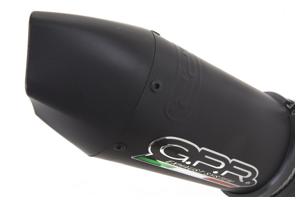 G.P.R. Exhaust Systems "GP Evo 4 Black Titanium" homologated/2 in 1 homologated for noise pollution only with racing decat link pipe slip-on exhaust silencer kit with double removable dB killer (baffle). Handmade in Italy.