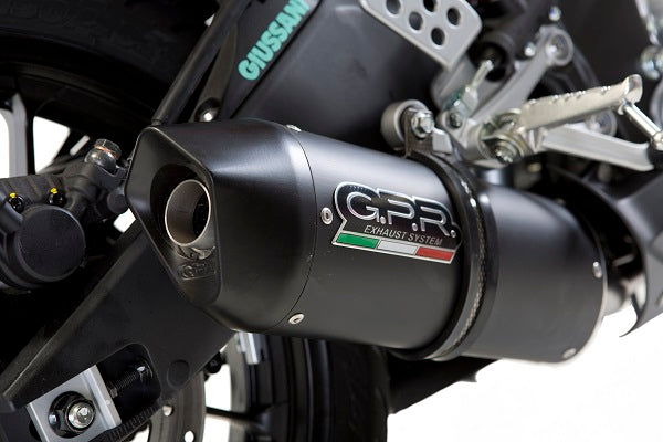 G.P.R. Exhaust Systems "Furore Evo 4 Nero" homologated slip-on exhaust silencer kit with double removable dB killer (baffle). Handmade in Italy.