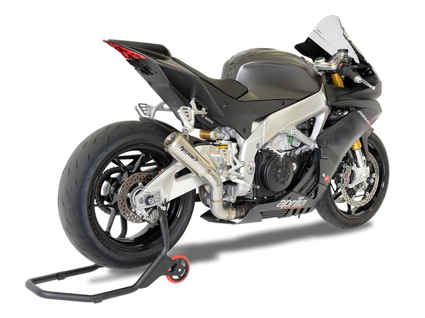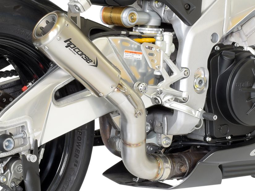GP-07 SATIN by HP Corse for Aprilia RSV4 RR / Racing Factory is pure sportiness, short and compact exhaust with aggressive and essential line.