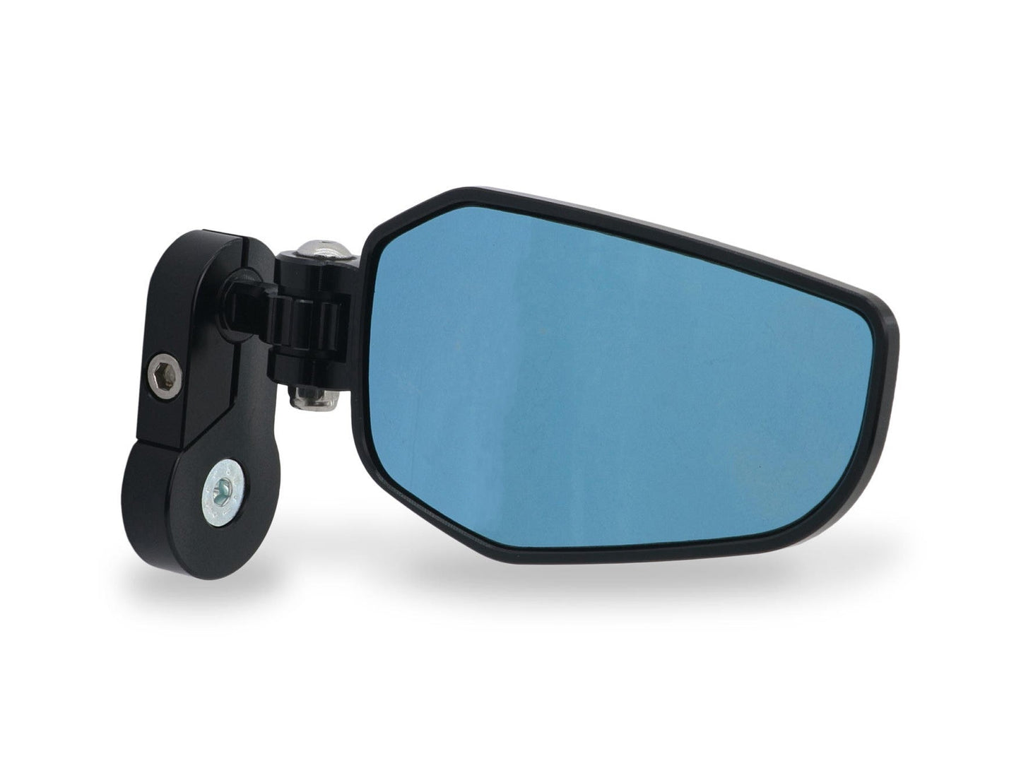 Bar-end mirror, machined from light alloy billet and then given an anodized surface finish.