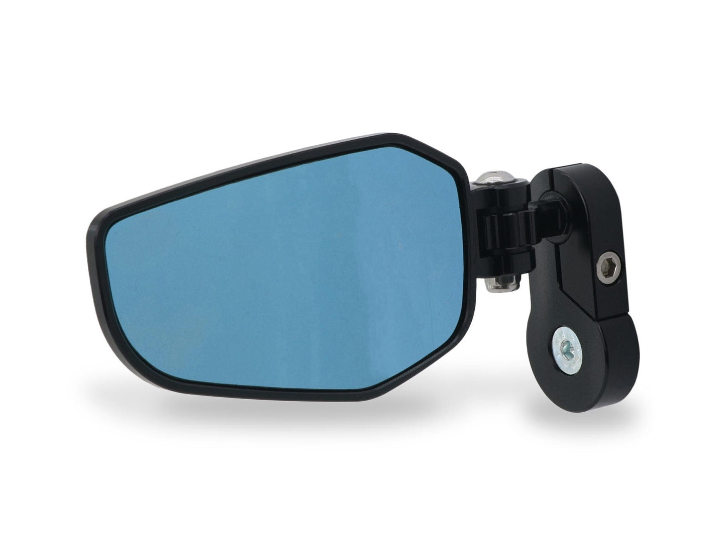 Bar-end mirror, machined from light alloy billet and then given an anodized surface finish.