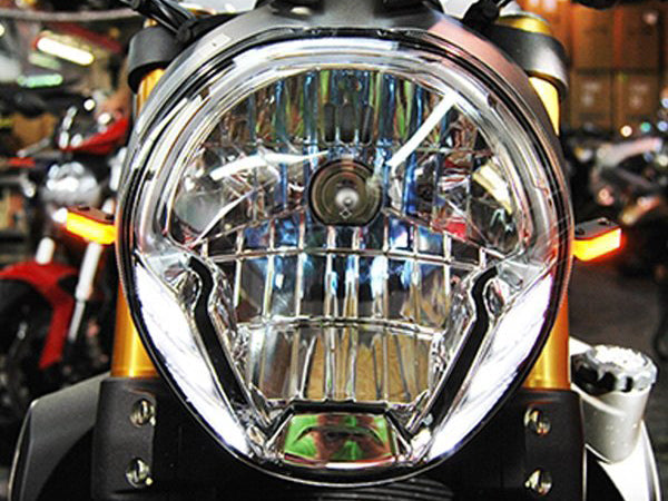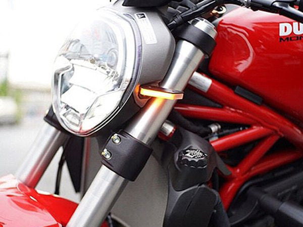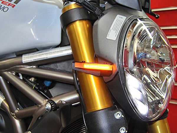 Custom designed LED front turn signals by New Rage Cycles for Ducati Monster 1200R.