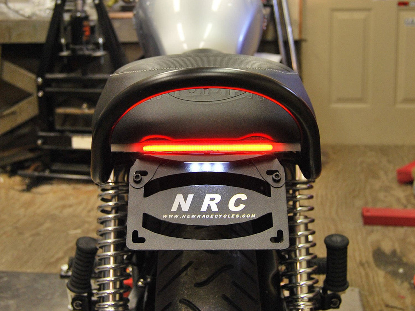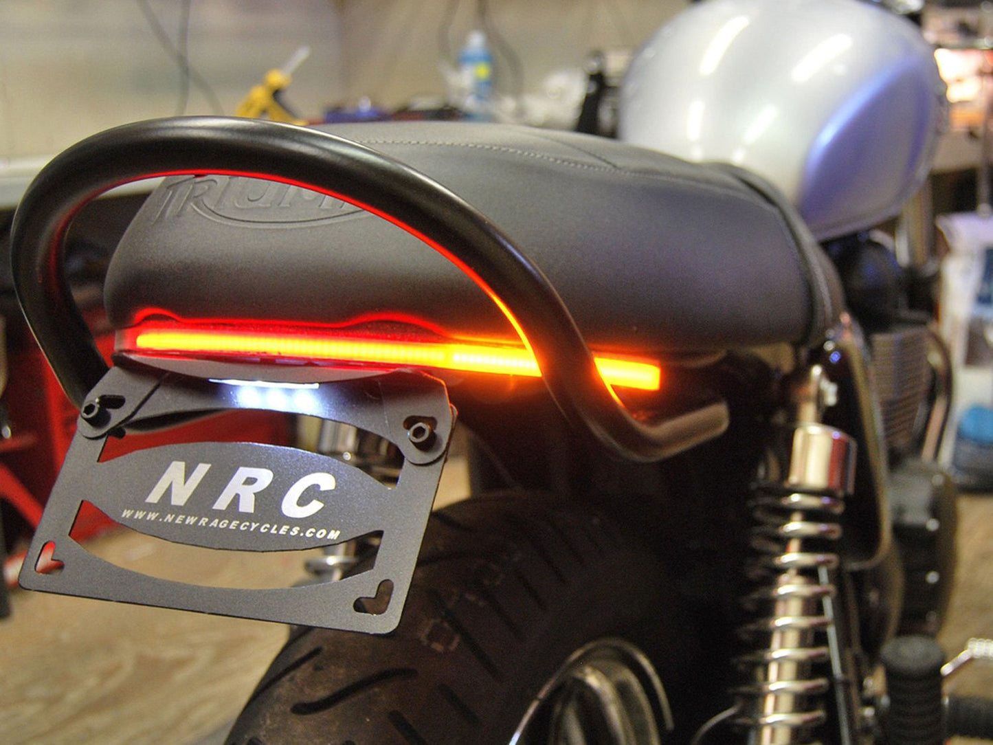 NRC hits the market with a custom designed fender eliminator kit for your Triumph Bonneville. This kit cleans up the back of your Bonneville with the brightest signals and brake light on the market!