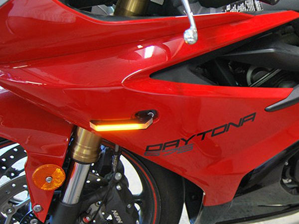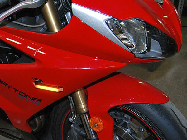 Custom designed plug & play LED front turn signals for Triumph Daytona 675.