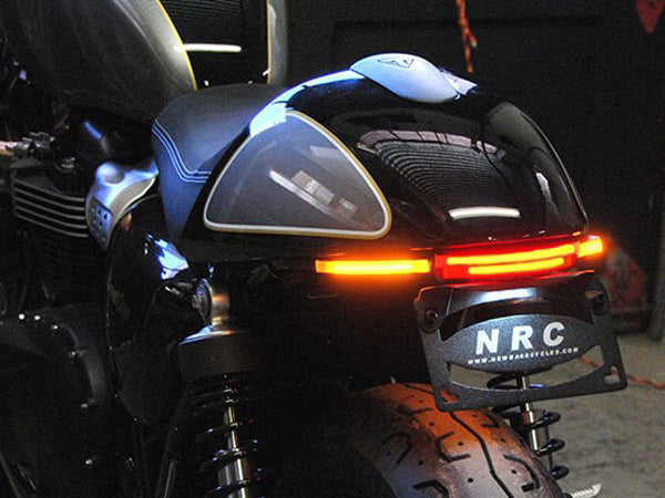 Triumph Street Cup LED fender eliminator from New Rage Cycles is a bolt on and plug and play kit that will clean up the rear end of your bike completely!