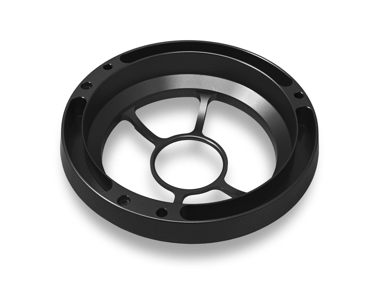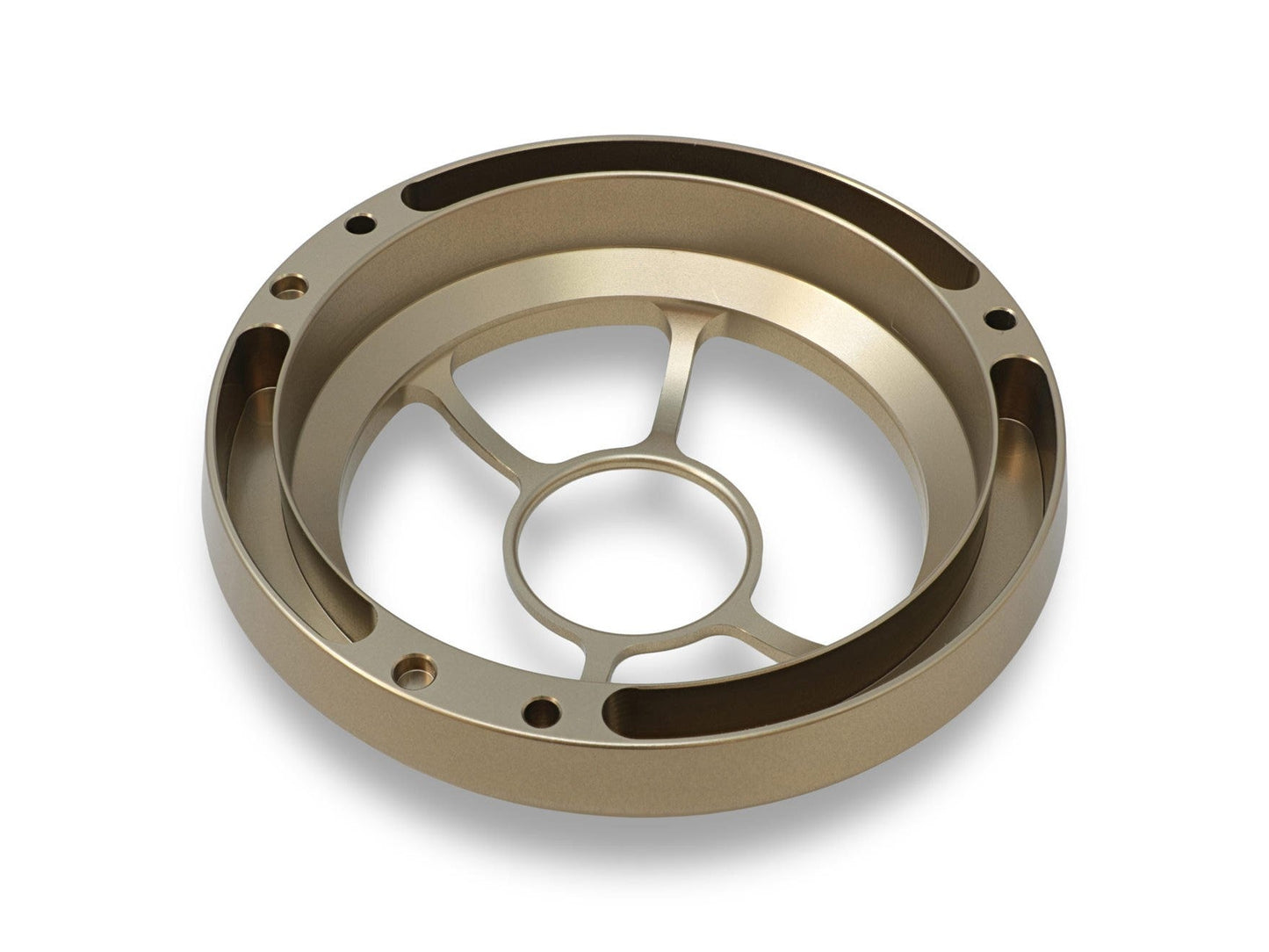 CNC machined of solid light alloy, anodized surface.
