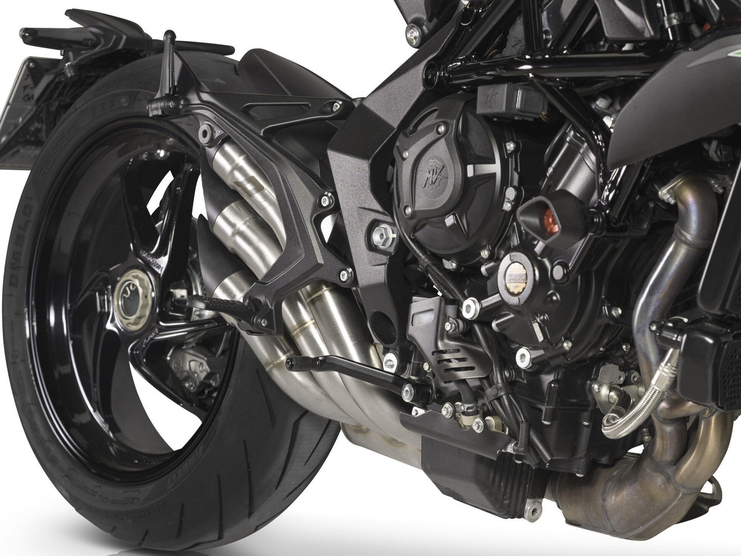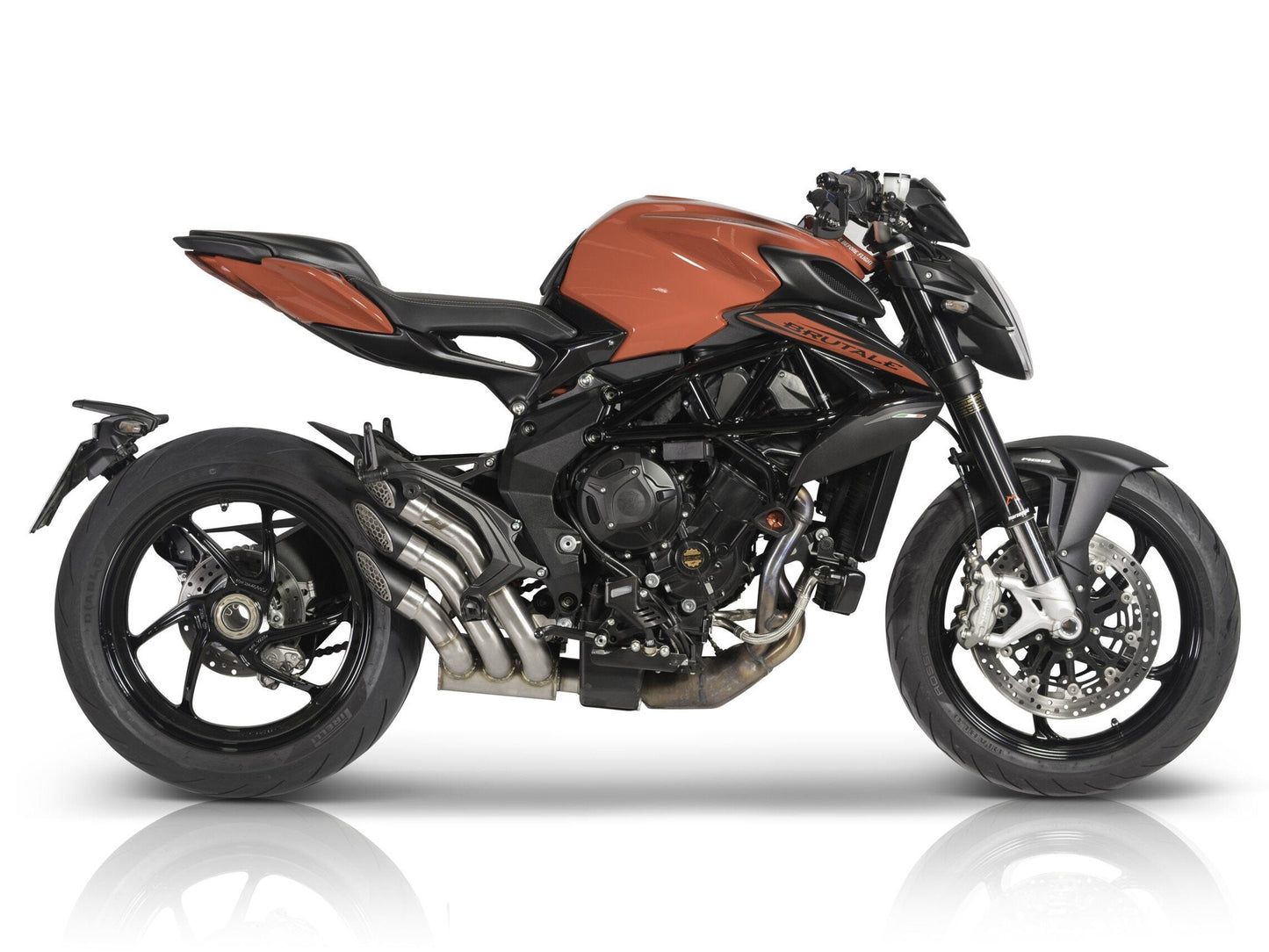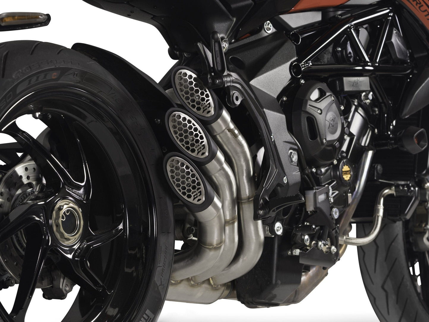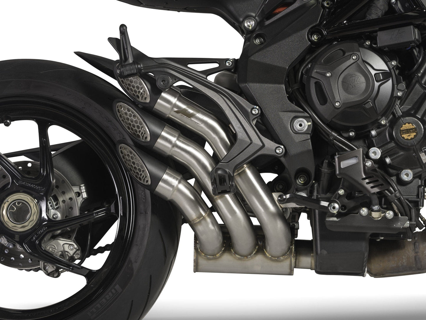 Triple slip-on exhaust by QD Exhaust for MV Agusta Brutale 800.