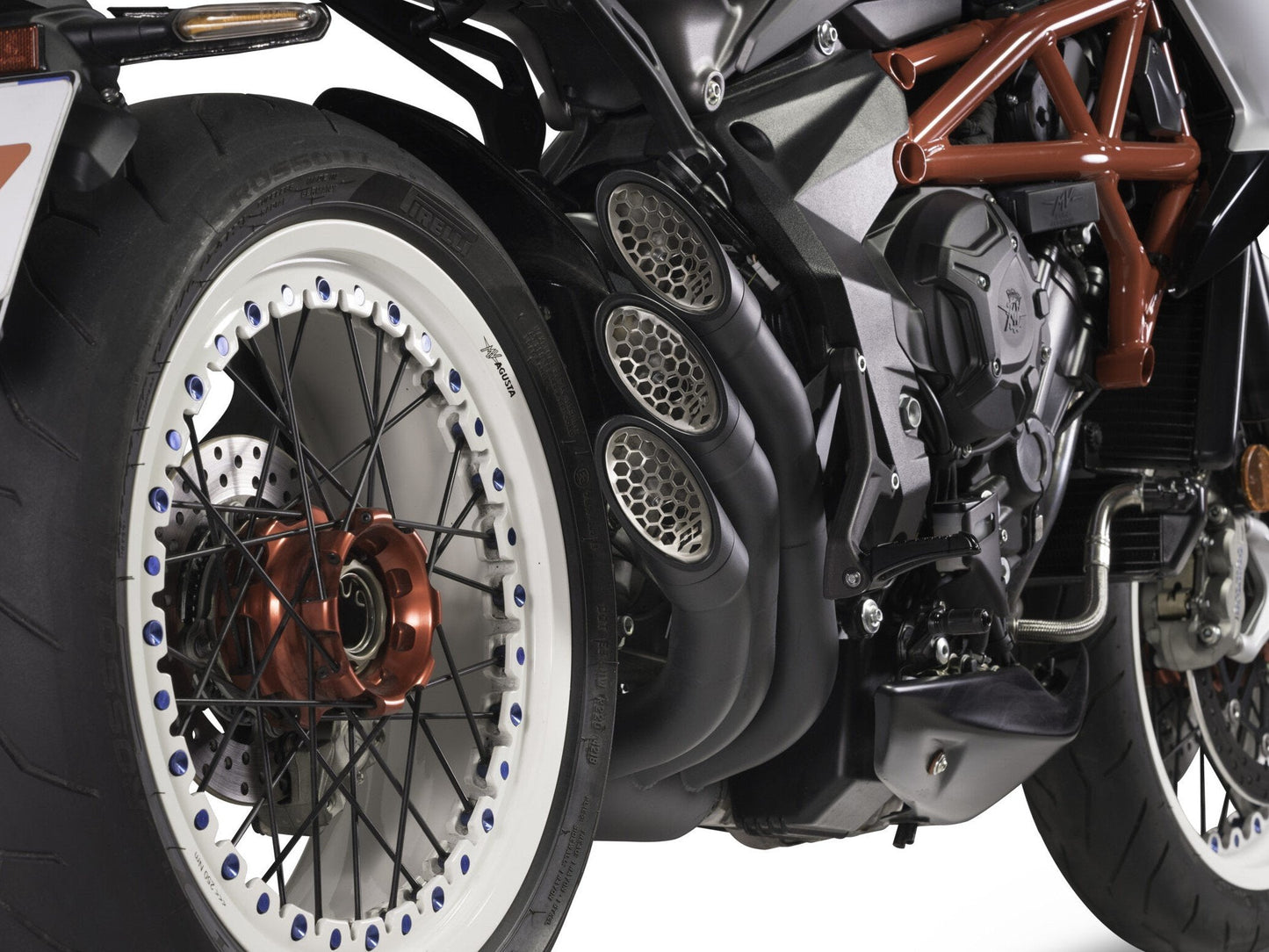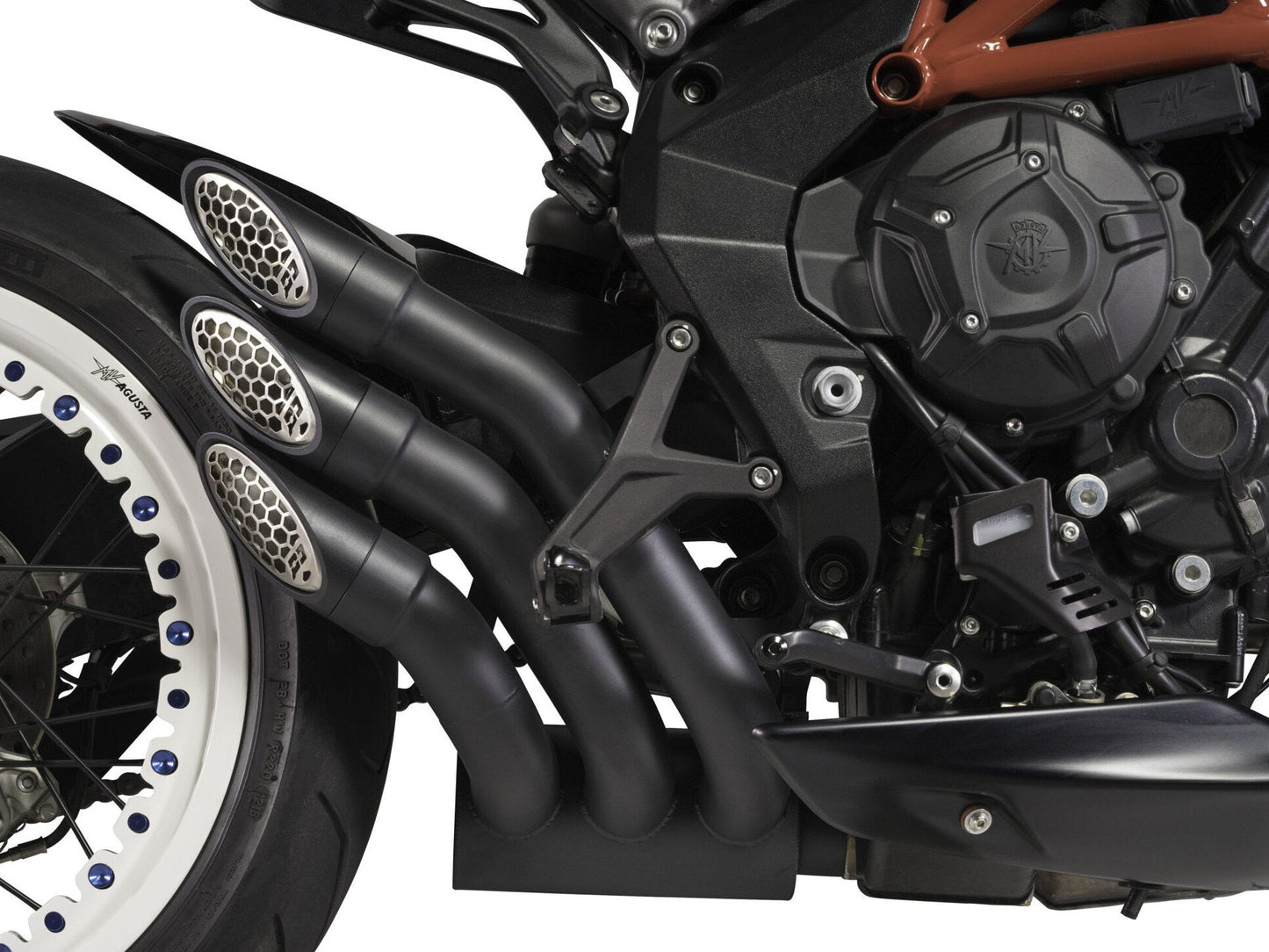 Triple slip-on exhaust by QD Exhaust for MV Agusta Dragster 800 RR.