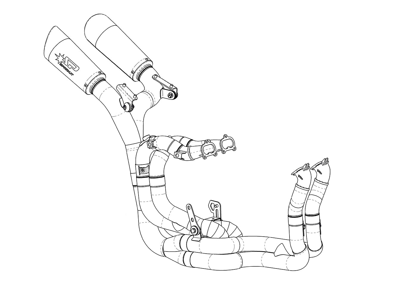 From the experience gained in WSBK Spark offers a double underseat exhaust, designed to get the maximum performance on track without any concern for dB level on all international circuits.
