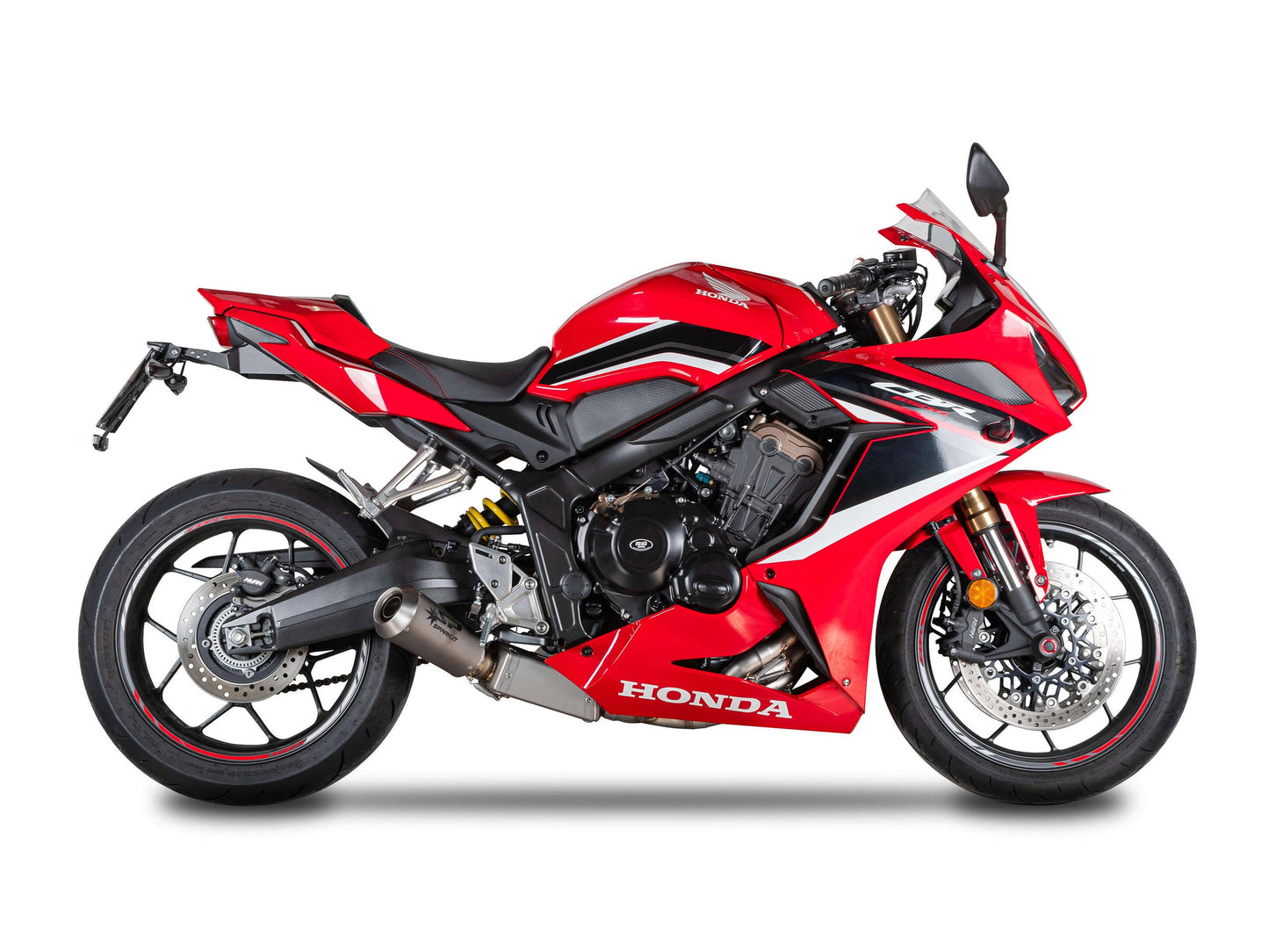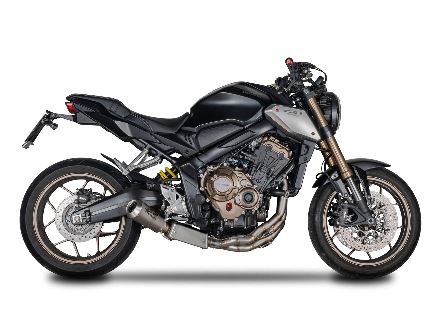 Titanium full low-mount exhaust system by Spark Exhausts for Honda CB650R / CBR650R motorcycles.