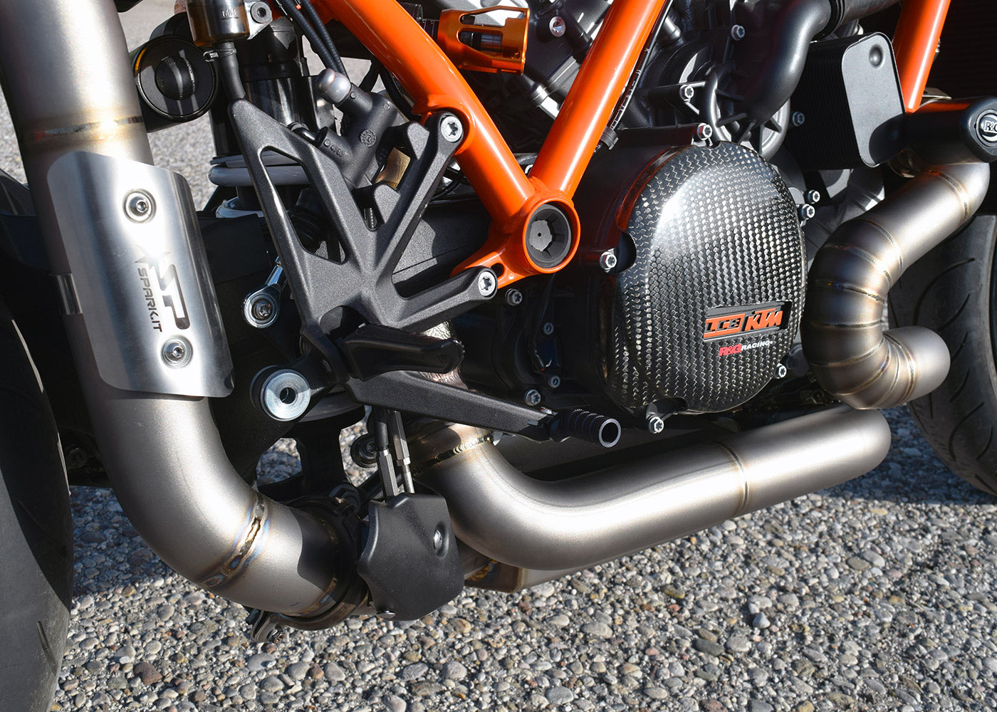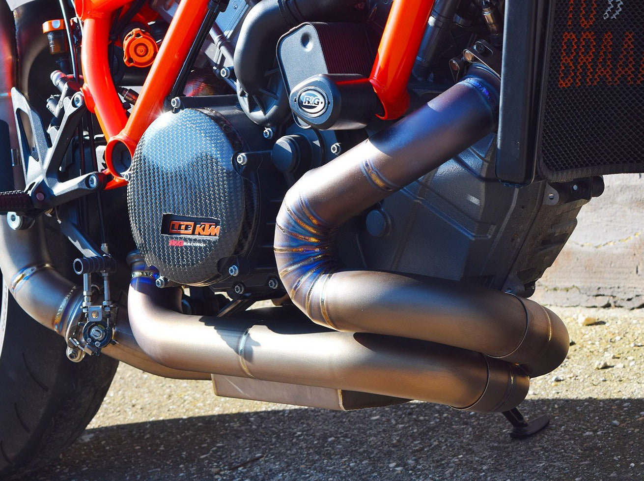 The Spark Exhaust Systems racing collector pipes for the KTM 1290 / 1390 Super Duke series include a valve simulator, ensuring seamless integration with the bike's exhaust system. However, it's crucial to remap the bike after installation to achieve optimal performance. Without proper remapping, the bike may run too lean, leading to excessively high exhaust temperatures and increased stress on the exhaust system. By remapping the bike, riders can ensure a balanced air-fuel mixture and prevent potential damage, allowing them to fully unleash the performance capabilities of their KTM Super Duke.