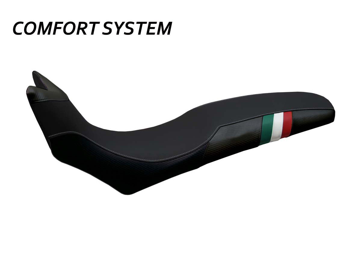 Exclusive seat cover made in black non-slip material. Laterals in black carbon look and seams.