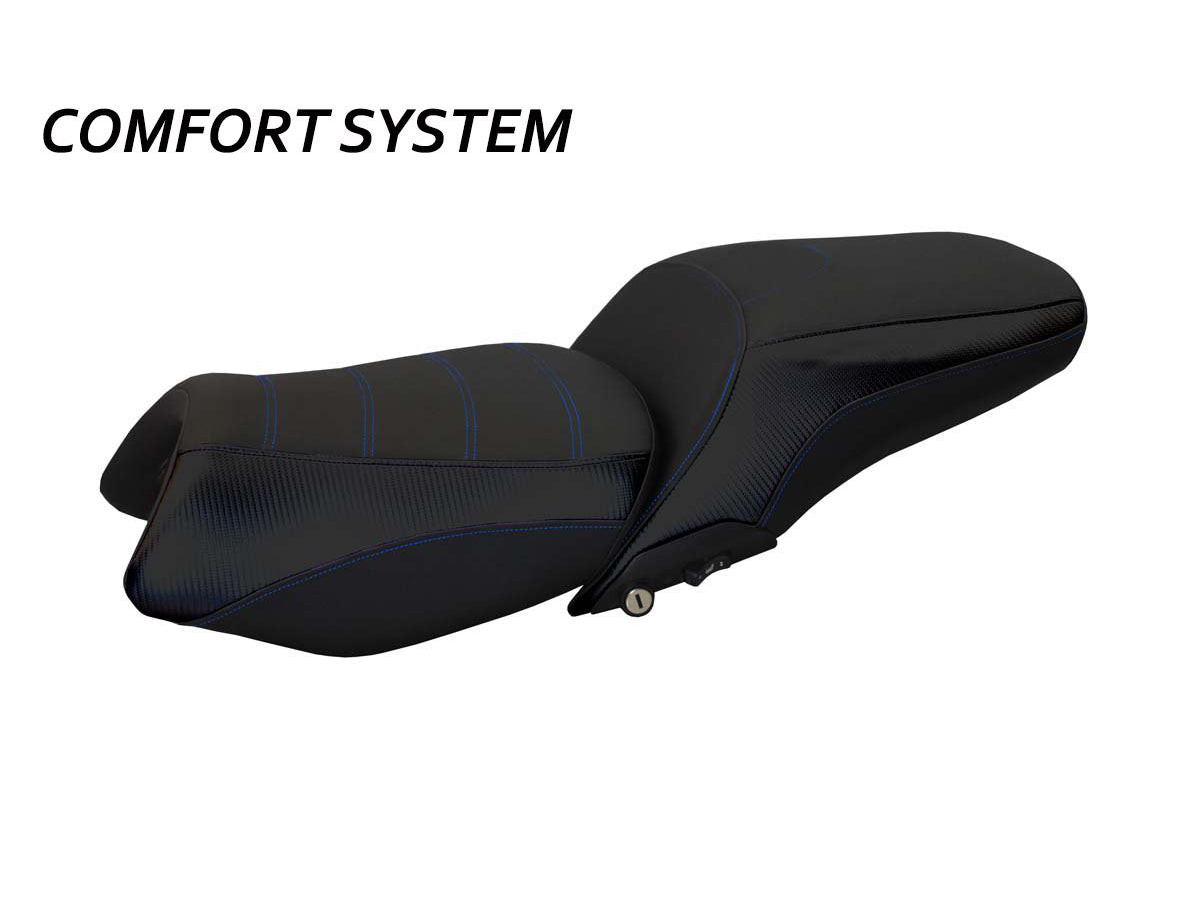Exclusive seat cover made in black non-slip material. Laterals in black carbon look and seams.