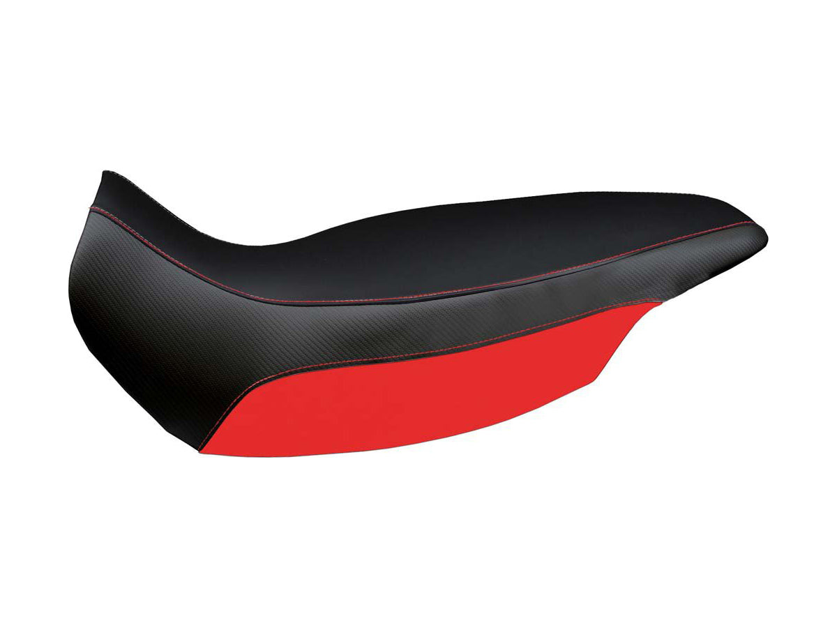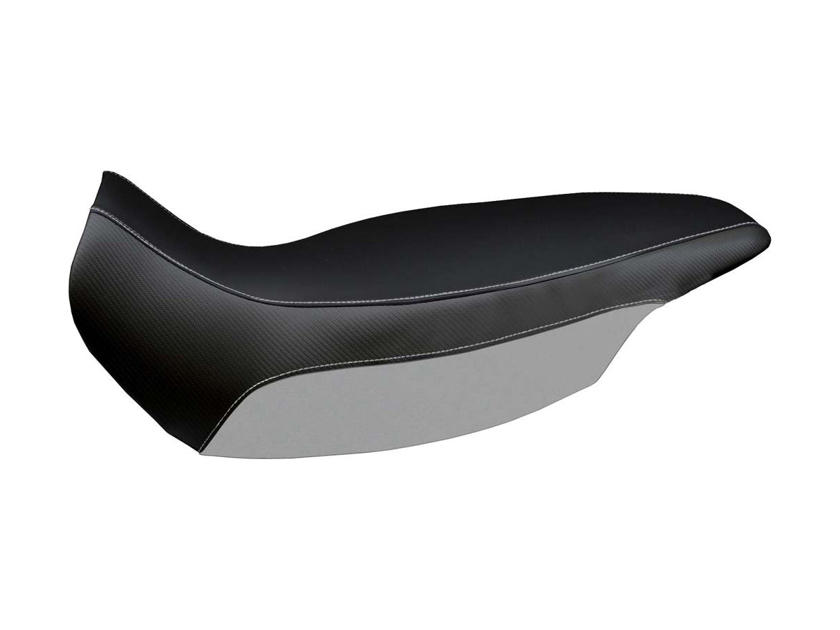 Exclusive seat cover made in black non-slip material. Laterals in black carbon look and inserts.