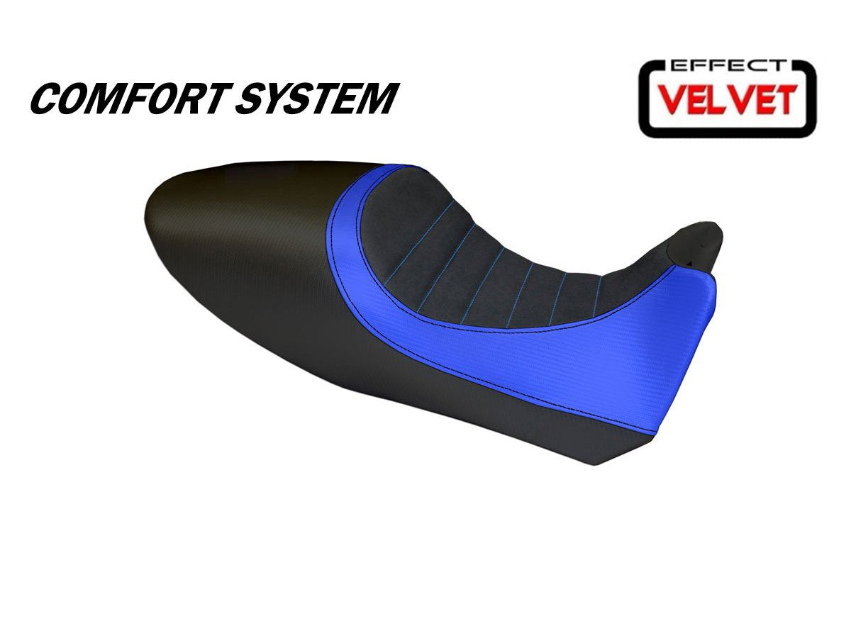 Exclusive seat cover realized in black non-slip material velvet effect. Laterals in black carbon look and inserts.