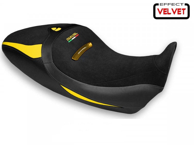 Velvet seat cover for Ducati Diavel 1260S by Tappezzeria Italia.