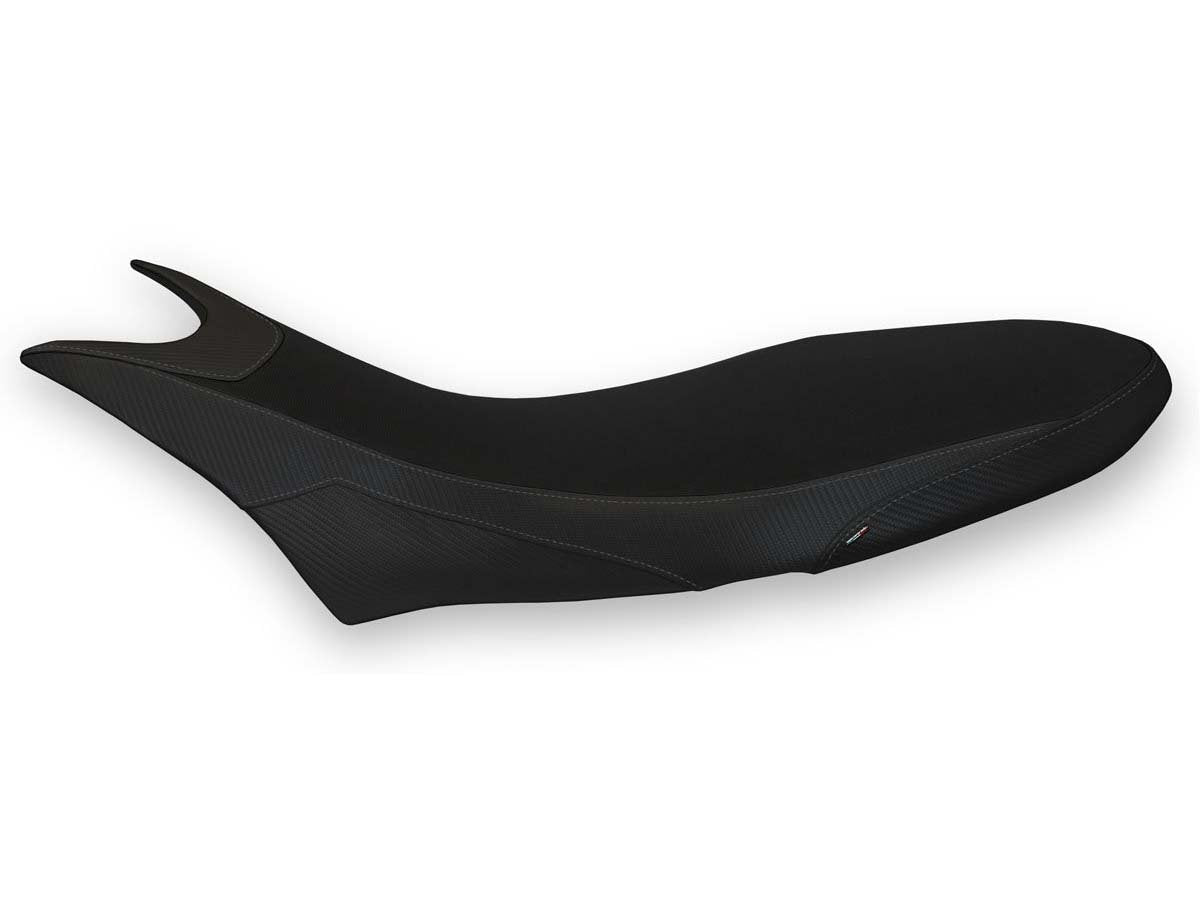 Exclusive seat cover realized with black non-slip material, black carbon look and inserts.