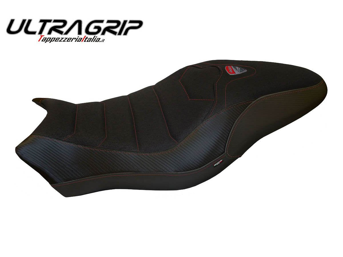 Exclusive seat cover made of black material ultragrip. Laterals in black carbon look and seams.