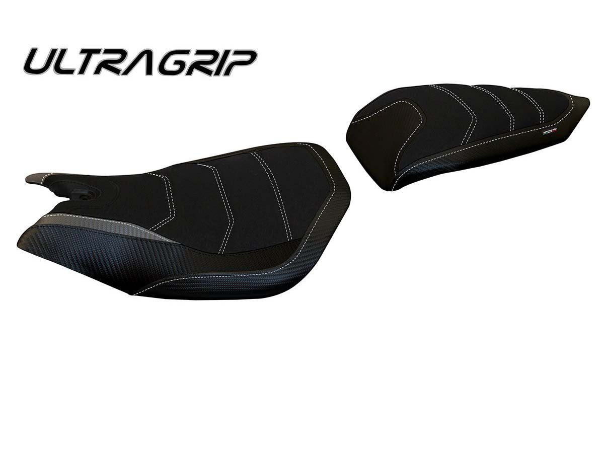 Exclusive seat cover made in black ultragrip material above. Laterals in black carbon look and inserts.