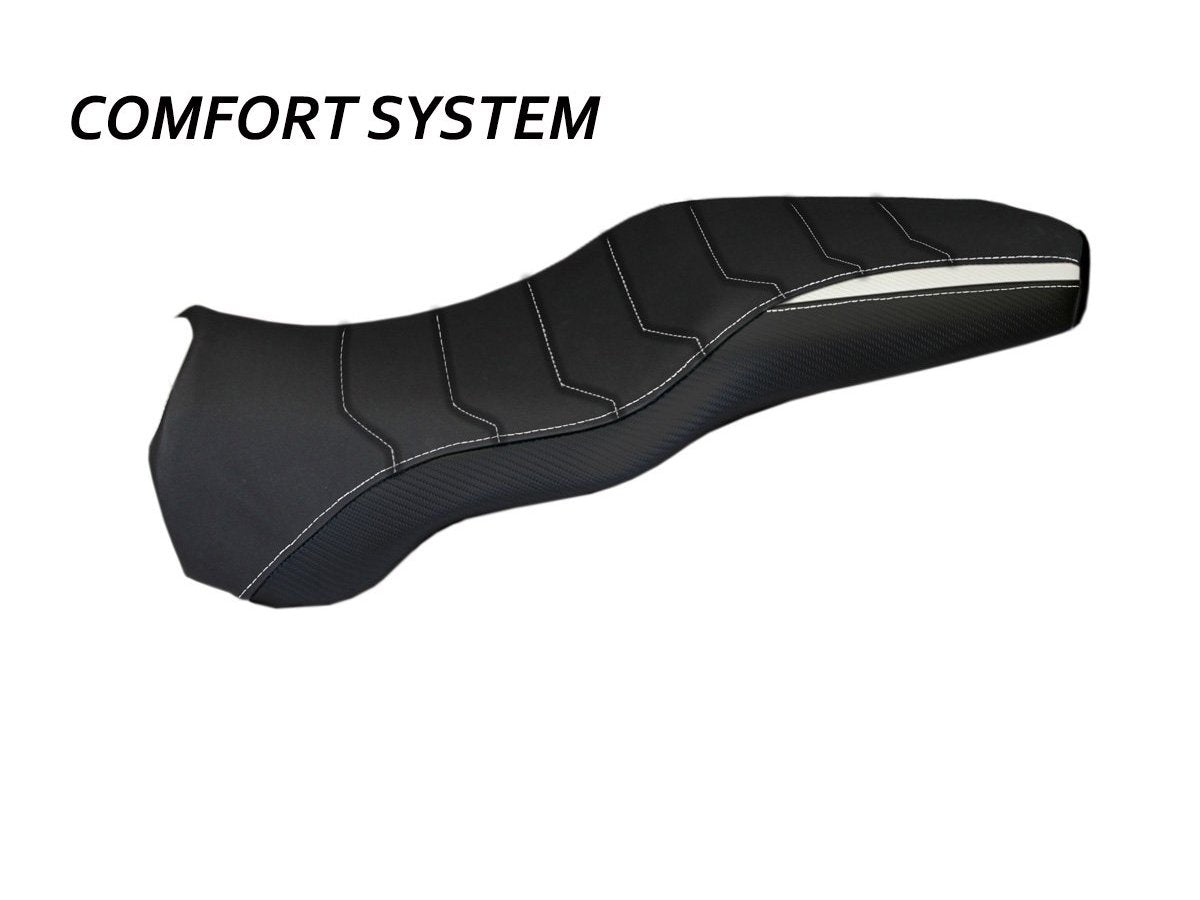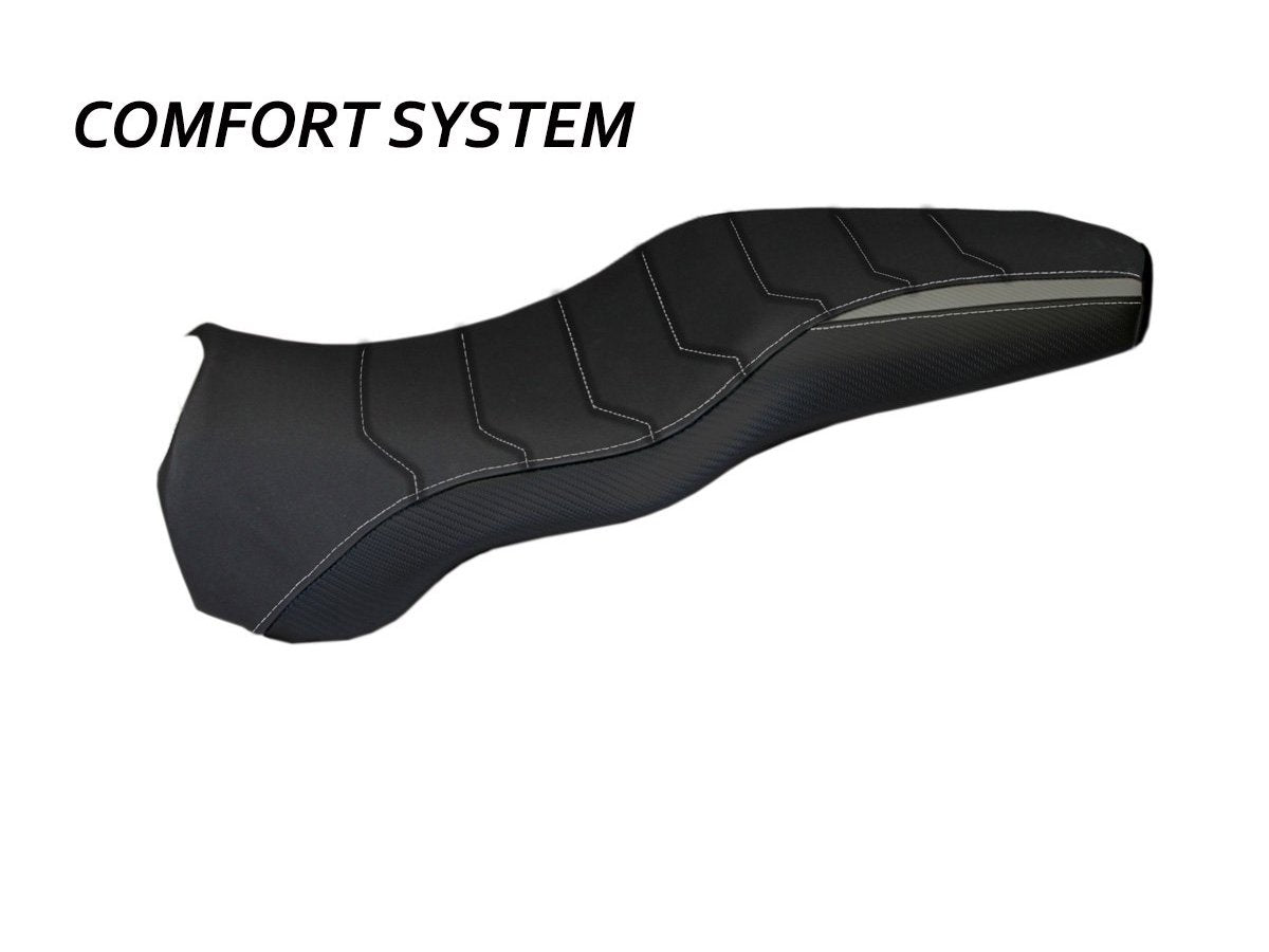 Exclusive seat cover made of black non-slip material. Laterals in black carbon look and inserts.