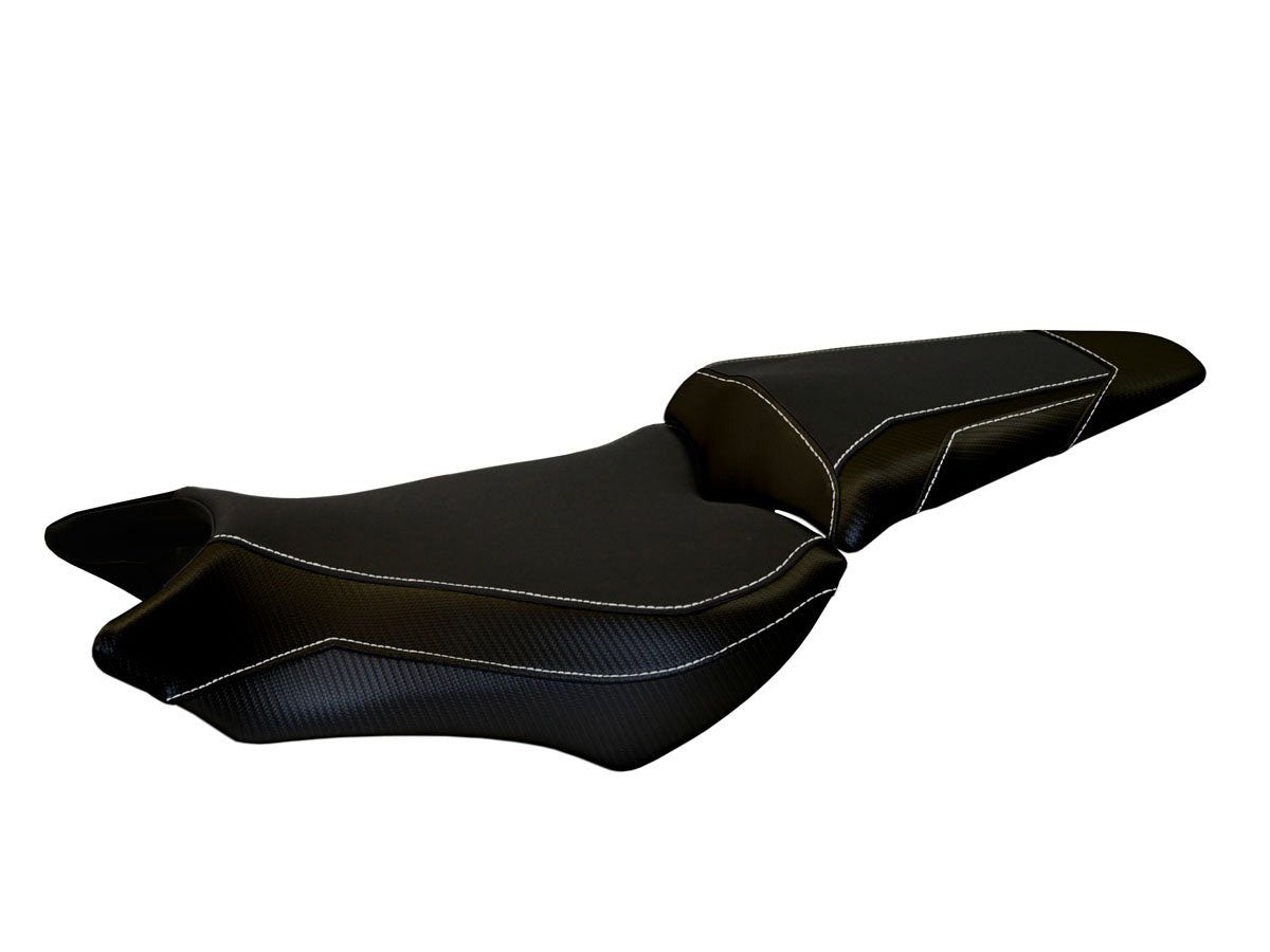 Exclusive seat cover made in black non-slip material. Laterals in black carbon look and seams.