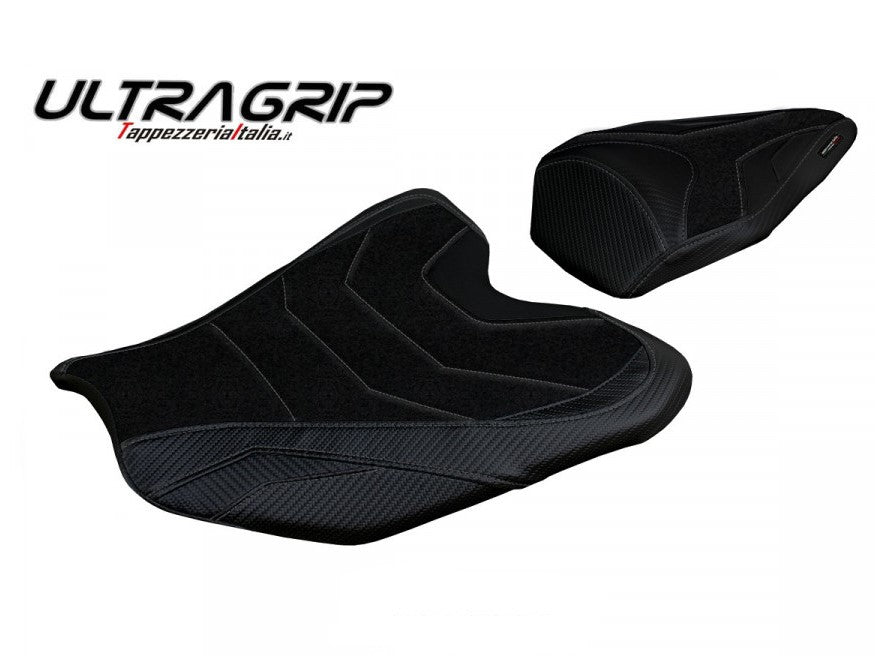 Exclusive seat cover made in black ultragrip material. Laterals in black carbon look and inserts.