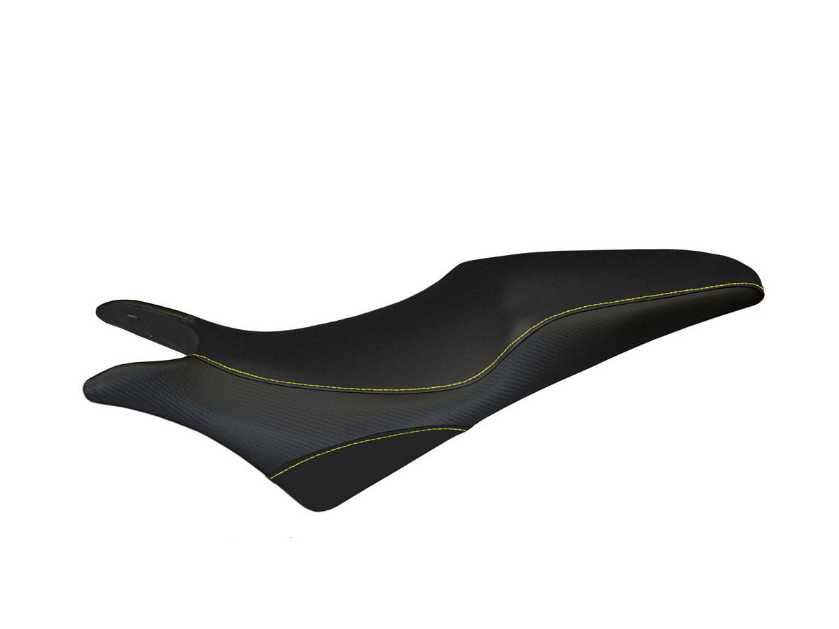 Exclusive seat cover made in black non-slip material. Laterals in black carbon look and seams.