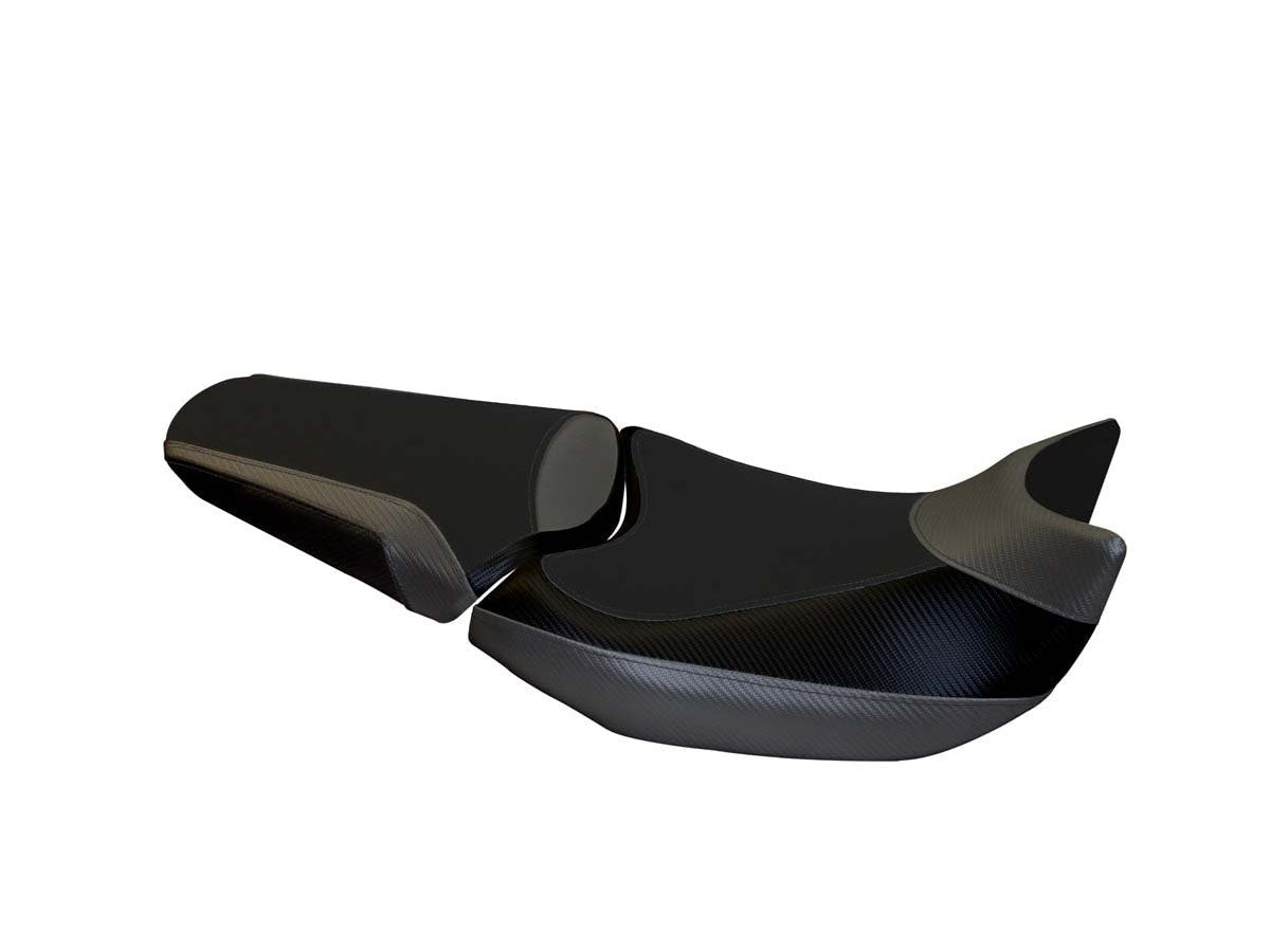 Exclusive seat cover made in black non-slip material. Laterals in black carbon look and inserts.