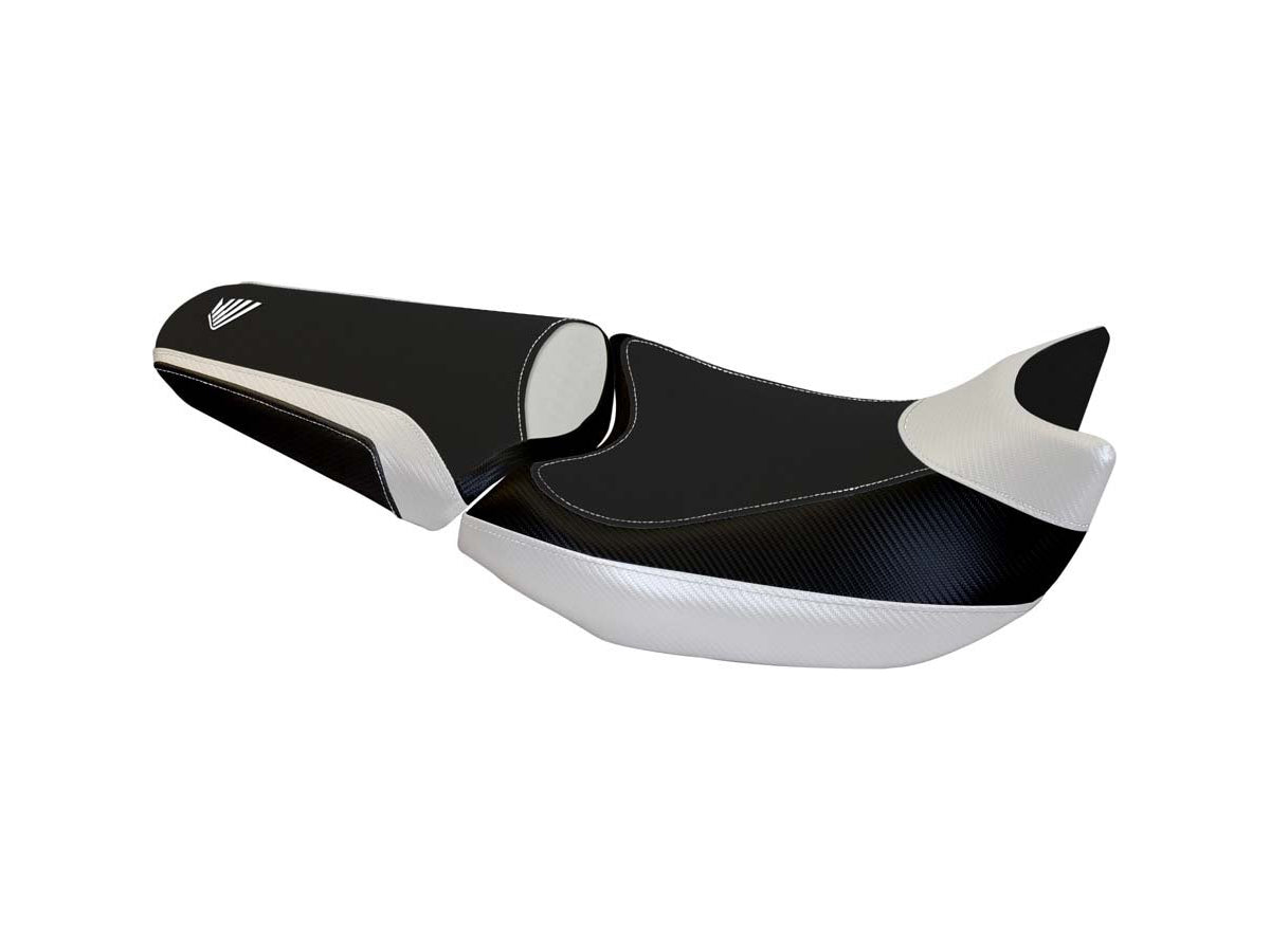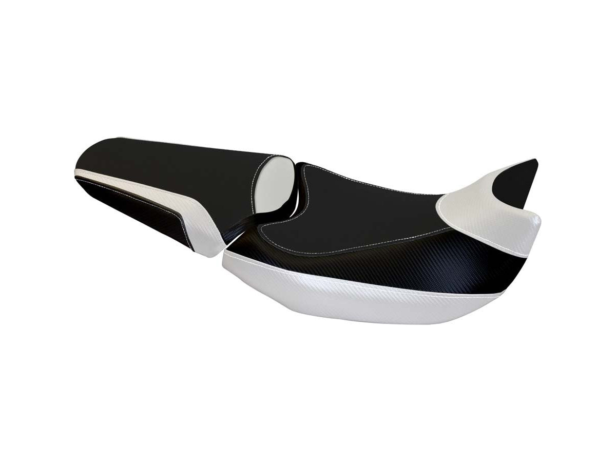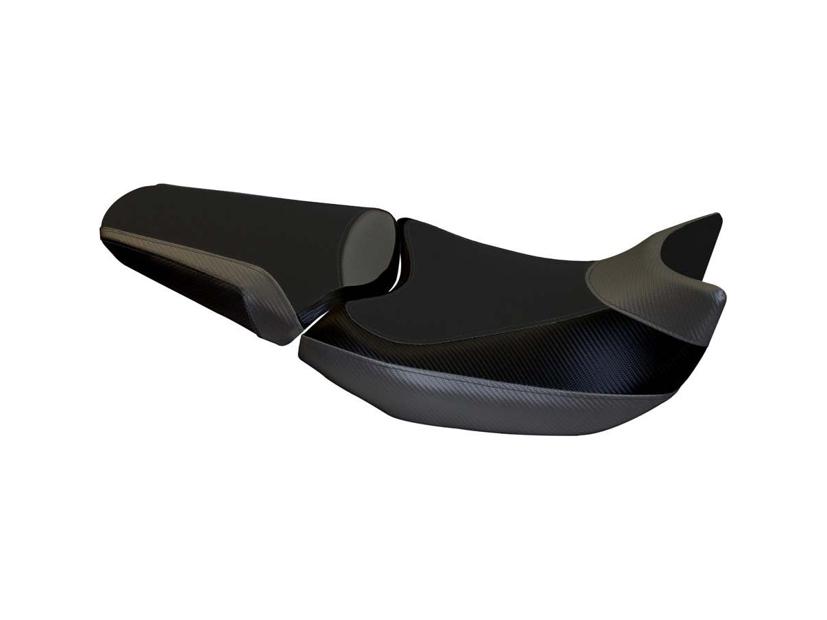 Exclusive seat cover made in black non-slip material. Laterals in black carbon look and inserts.