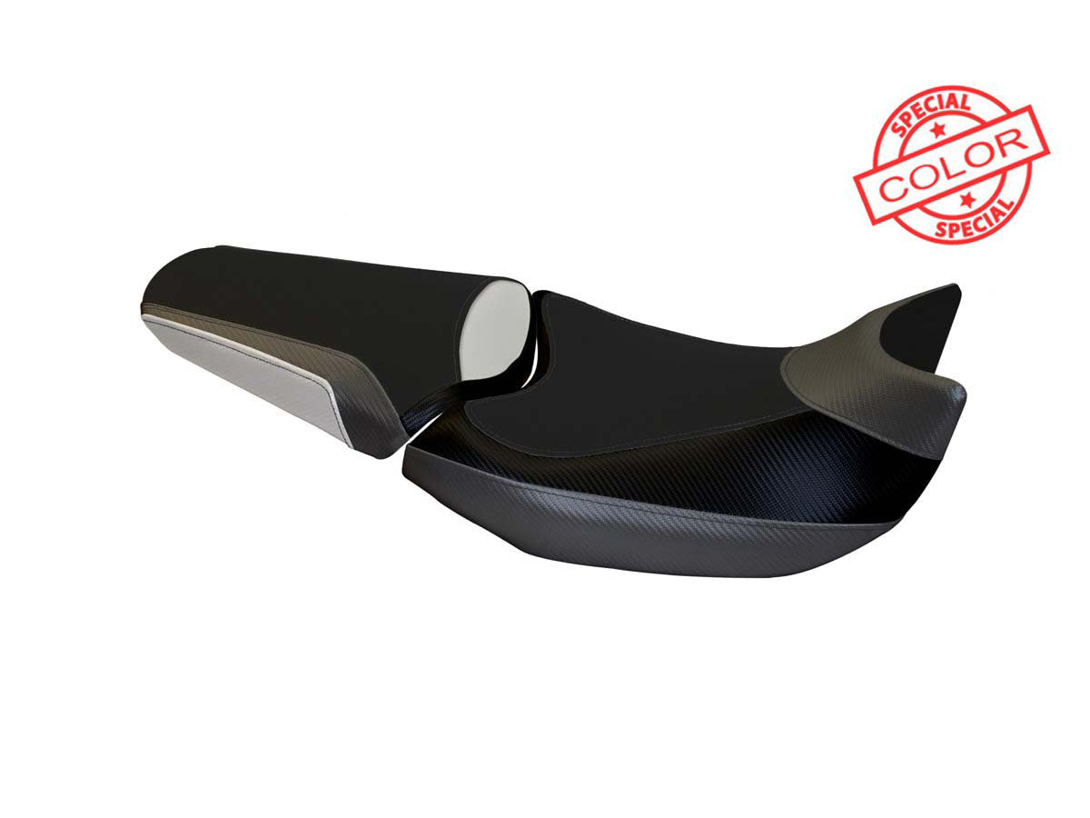 Exclusive seat cover made in black non-slip material. Laterals in black carbon look and inserts.