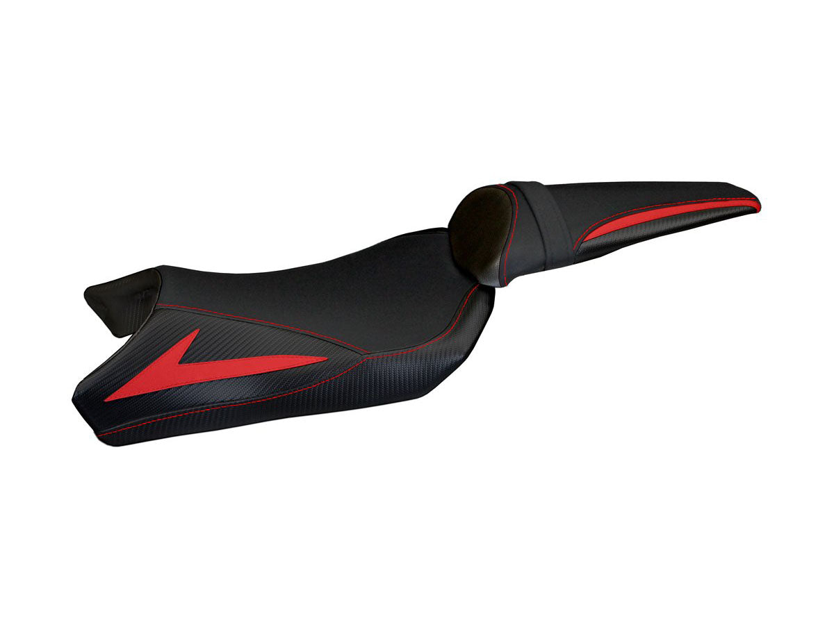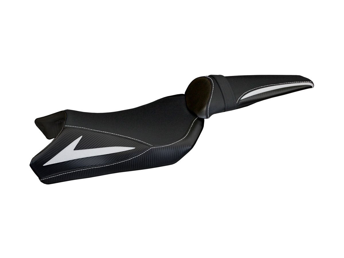 Exclusive seat cover made in black non-slip material. Laterals in black carbon look and seams.