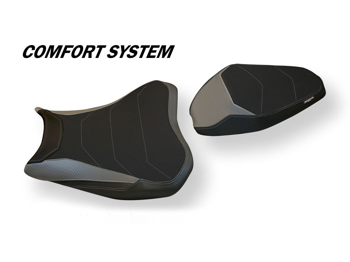 Exclusive seat cover made in black non-slip material. Laterals in black carbon look and inserts.
