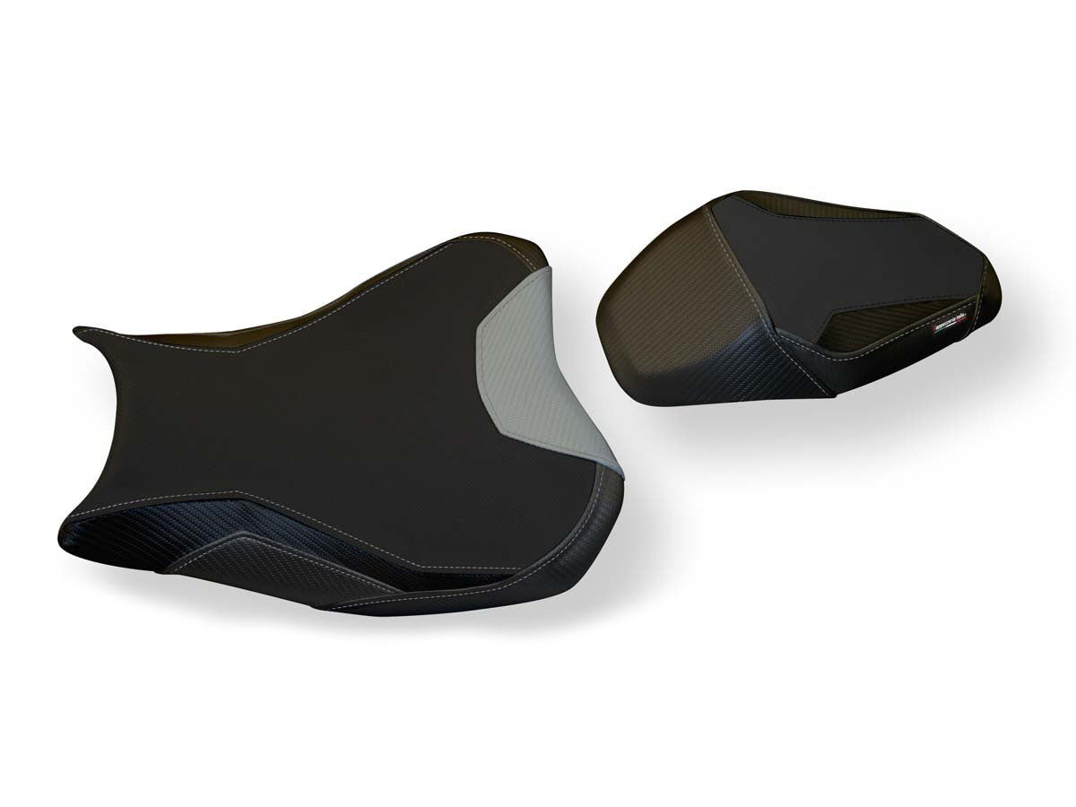 Exclusive seat cover made in black non-slip material. Laterals in black carbon look and inserts.