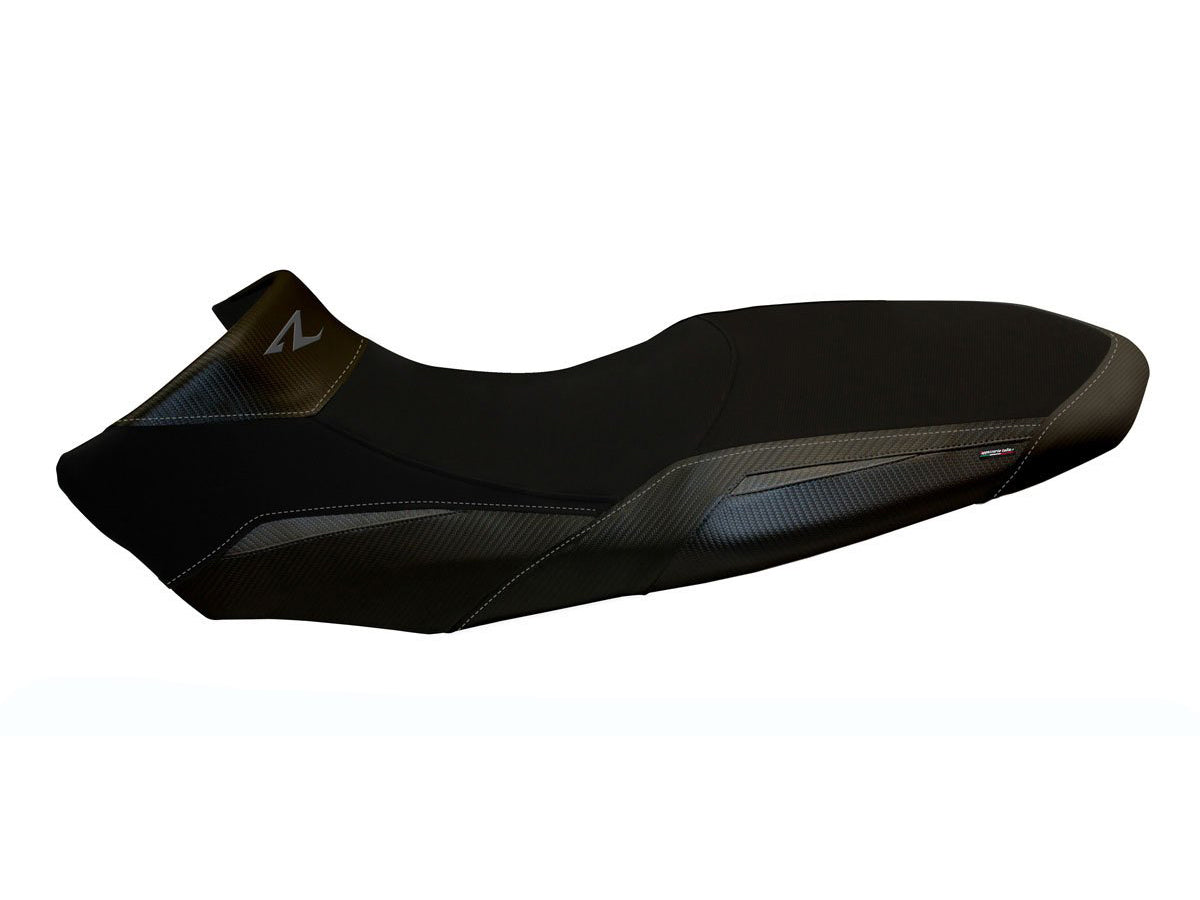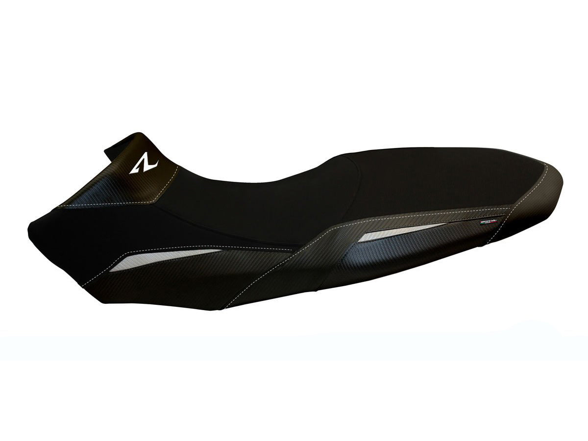Exclusive seat cover made in black non-slip material. Laterals in black carbon look and inserts.