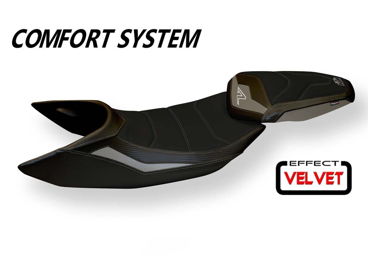 Comfort seat cover for KTM 1290 Super Duke R by Tappezzeria Italia.