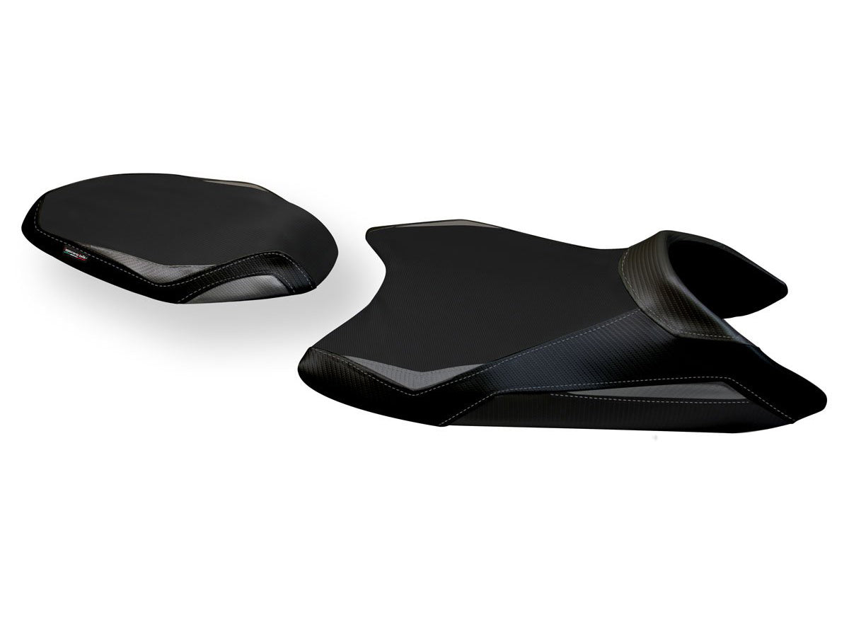 Exclusive seat cover made in black non-slip material. Laterals in black carbon look and inserts.