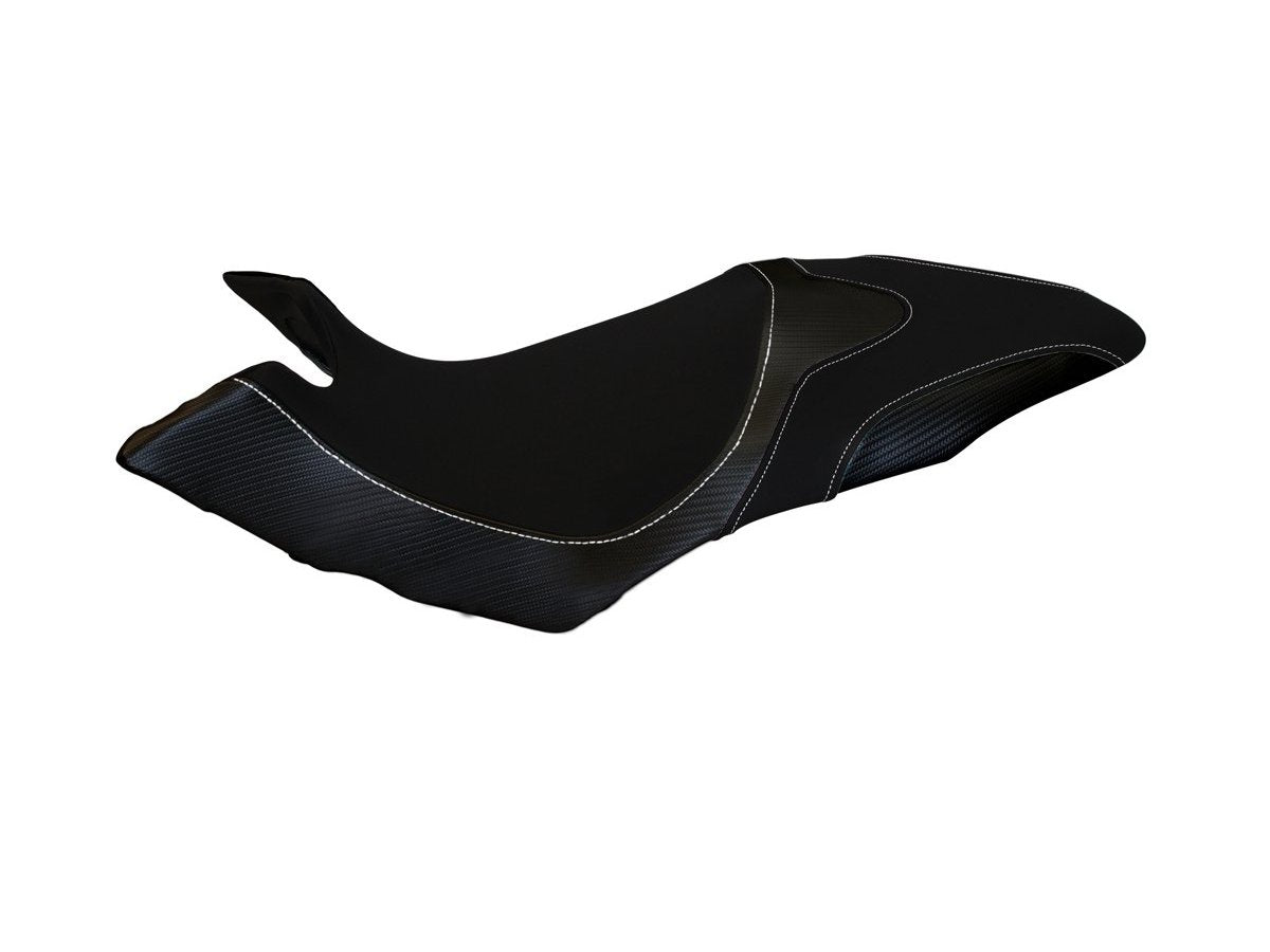 Exclusive seat cover realized in black non-slip material. Laterals in black carbon look and seams.