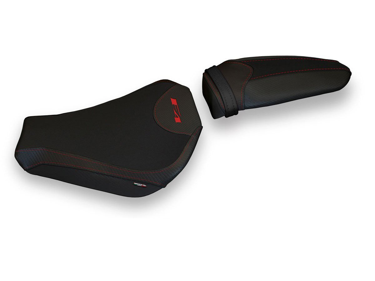Exclusive seat cover realized in black non-slip material. Laterals black carbon look and seams.