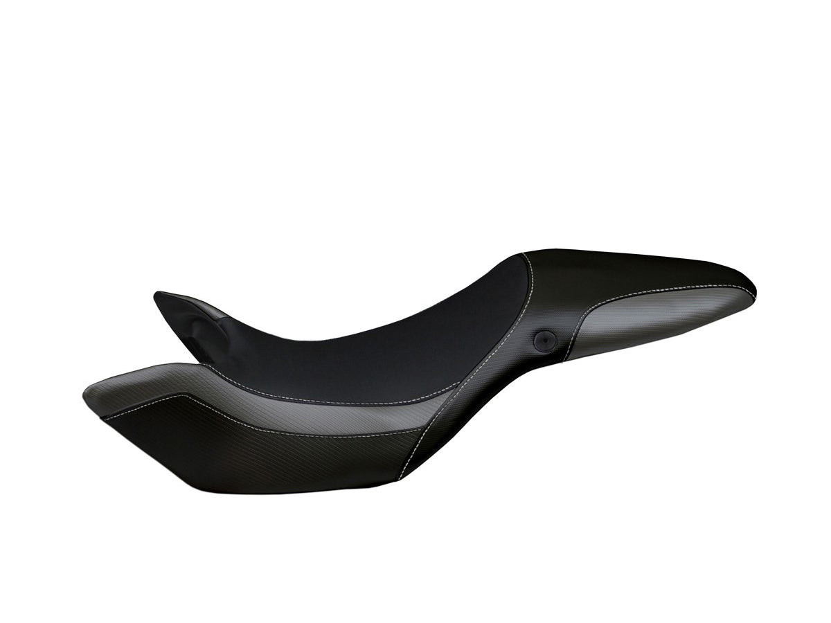 Exclusive seat cover made in black non-slip material. Laterals in black carbon look and inserts.