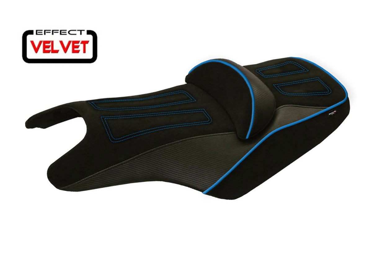 Exclusive seat cover made in black velvet effect above. Laterals black carbon look and border.