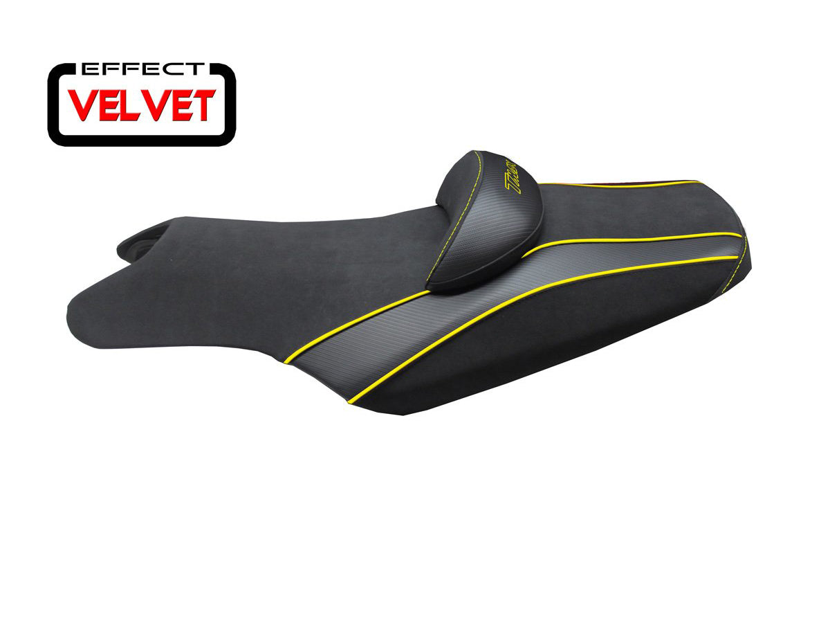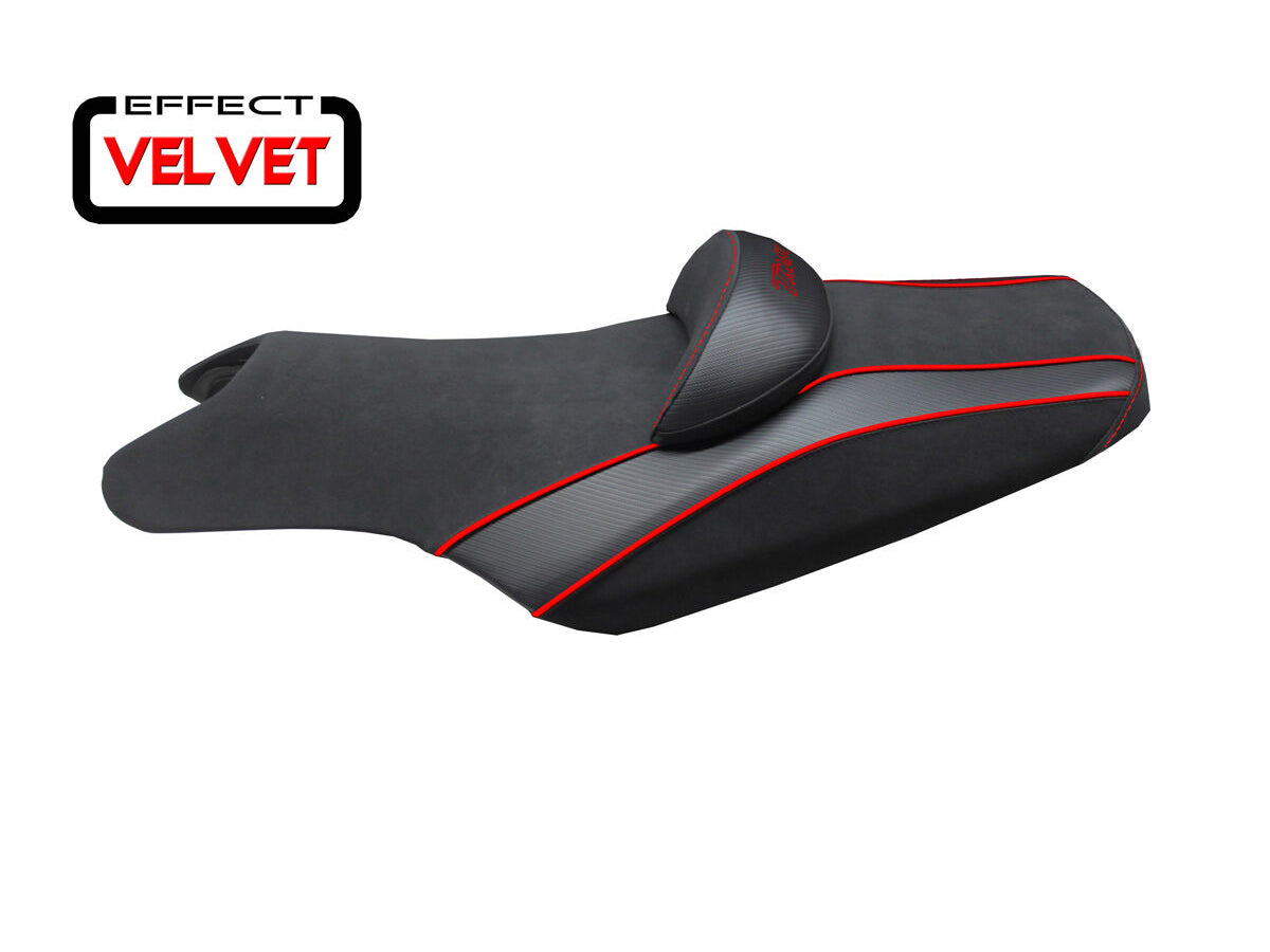 Exclusive seat cover made in black velvet effect above. Laterals black carbon look and border.